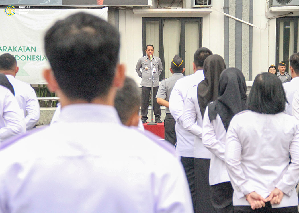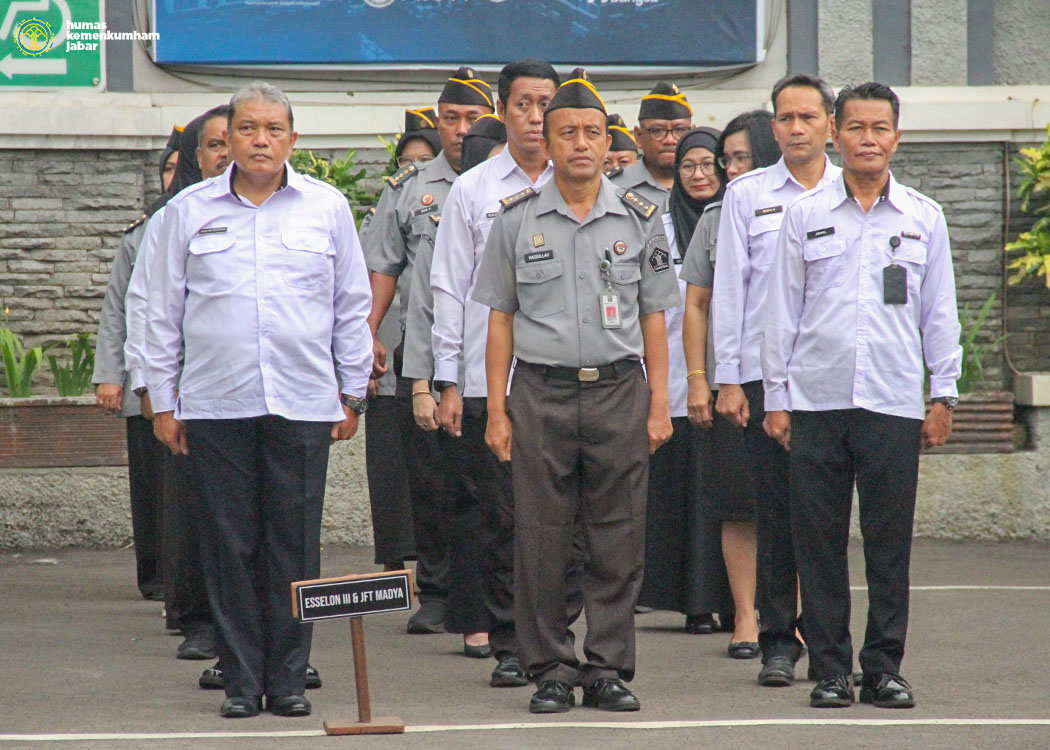 BANDUNG-Kantor Wilayah Kementerian Hukum Jawa Barat, awali hari dengan melaksanakan apel pagi di lapangan aspal Kanwil Kemenkum Jabar. Pada hari ini, Senin (10/02/25).
