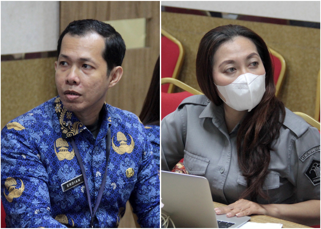 Pada ruang rapat Ismail Saleh, Kepala Divisi P3H Funna Maulia Masaile bersama Perancang PUU Erdian, Anggraini dan Shendy dan para Perancang PUU Kanwil Jabar melaksanakan Rapat dengan anggota DPRD Kab. Bogor dan perwakilan Perangkat Daerah Pemkab Bogor yang terhubung melalui Zoom Meeting untuk membahas Raperda tentang Pelindungan dan Pengelolaan Sumber Daya Air, serta Raperda tentang Pengelolaan Sampah.