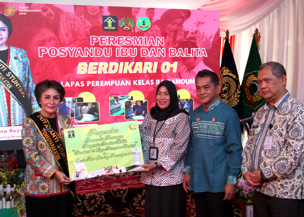 BANDUNG - Dalam rangka menyukseskan program nasional Pemerintah Republik Indonesia terkait pencegahan dan penanganan stunting pada anak, Kementerian Hukum dan Hak Asasi Manusia Jawa Barat (Kemenkumham Jabar) pada siang hari ini menyelenggarakan peresmian fasilitas Pos Layanan Terpadu (Posyandu) pada salah satu Unit Pelaksana Teknis di wilayahnya yaitu Lembaga Pemasyarakatan (Lapas) Perempuan Kelas IIA Bandung (Jumat, 09/08/2024).