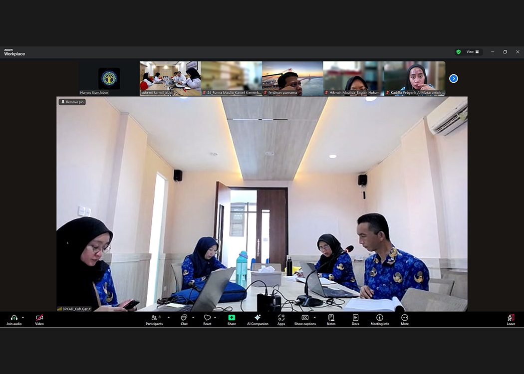 BANDUNG – Kanwil Kemenkum Jabar gelar Rapat Pengharmonisasian terhadap tiga Rancangan Peraturan Bupati (Raperbup) dari Pemerintah Kabupaten Garut secara virtual pada Rabu, 1 Oktober 2025. Kegiatan diikuti oleh para Kepala Perangkat Daerah serta pejabat manajerial dan non-manajerial di lingkungan Pemkab Garut.