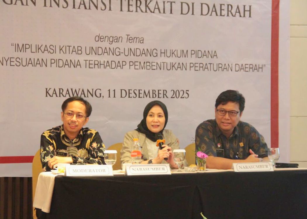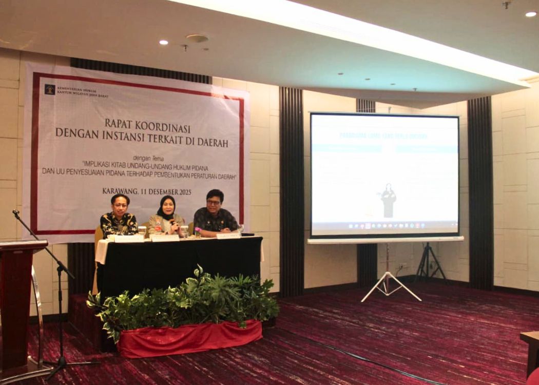 KARAWANG – Kanwil Kemenkum Jabar kembali menunjukkan peran strategisnya dalam mengawal reformasi hukum di daerah. Langkah konkret ini diwujudkan melalui penyelenggaraan sosialisasi mendalam terkait implementasi Kitab Undang-Undang Hukum Pidana (KUHP) baru dan implikasinya yang signifikan terhadap pembentukan Peraturan Daerah (Perda), Kamis, 11 Desember 2025. Kegiatan ini menjadi momentum krusial bagi pemerintah daerah untuk menyelaraskan produk hukum mereka dengan kebijakan pidana nasional yang terus berkembang.
