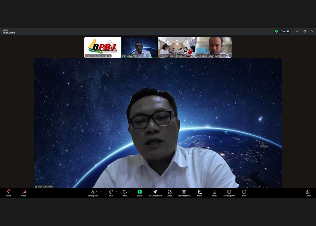 BANDUNG – Kanwil Kemenkum Jabar gelar Rapat Harmonisasi Rancangan Peraturan Kepala Daerah (Perkada) Kabupaten Sumedang, bertempat di Ruang Ismail Saleh secara daring, Rabu (29/10/2025). Kegiatan ini merupakan bagian dari komitmen Kemenkum Jabar dalam memastikan kualitas produk hukum di daerah, sejalan dengan arahan Kakanwil Kemenkum Jabar, Asep Sutandar, untuk proaktif melakukan pembinaan dan penyelarasan regulasi.