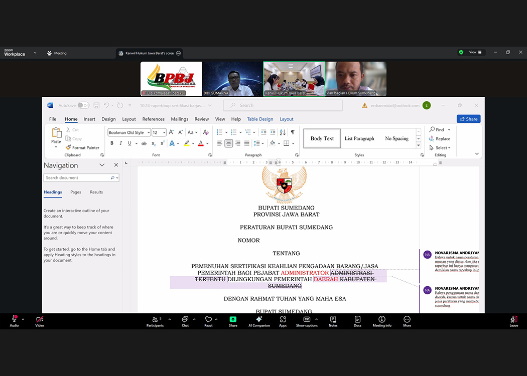 Rapat ini secara spesifik membahas Rancangan Peraturan Bupati (Perbup) tentang Pemenuhan Sertifikasi Keahlian Pengadaan Barang/Jasa (PBJ) Pemerintah bagi Pejabat Administrator. Fokus utama regulasi ini adalah untuk meningkatkan tata kelola pemerintahan yang baik di Sumedang, khususnya dalam proses PBJ yang dibiayai oleh APBD.