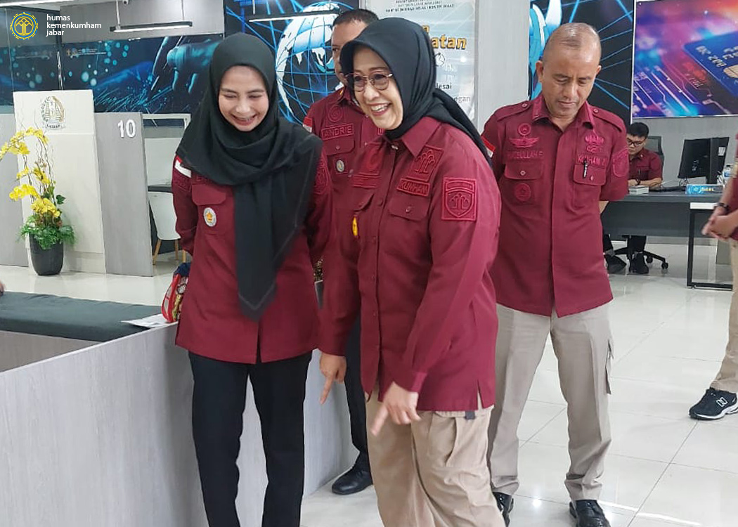 Bekasi - Direktur Diseminasi dan Penguatan HAM Direktorat Jenderal HAM Gusti Ayu P. Suwardani mengapresiasi Pelayanan Publik Berbasis HAM (P2HAM) setelah melakukan Monitoring dan Evaluasi (Monev) ke kantor Imigrasi Bekasi dan Lapas Cikarang. Kunjungan tersebut diterima langsung Kepala Kantor Imigrasi Abdurrahman dan Kepala Lapas Cikarang Imam Sapto yang didampingi oleh Pejabat stuktural dan operator P2HAM yang berlangsung (Kamis, 18/07/2023).