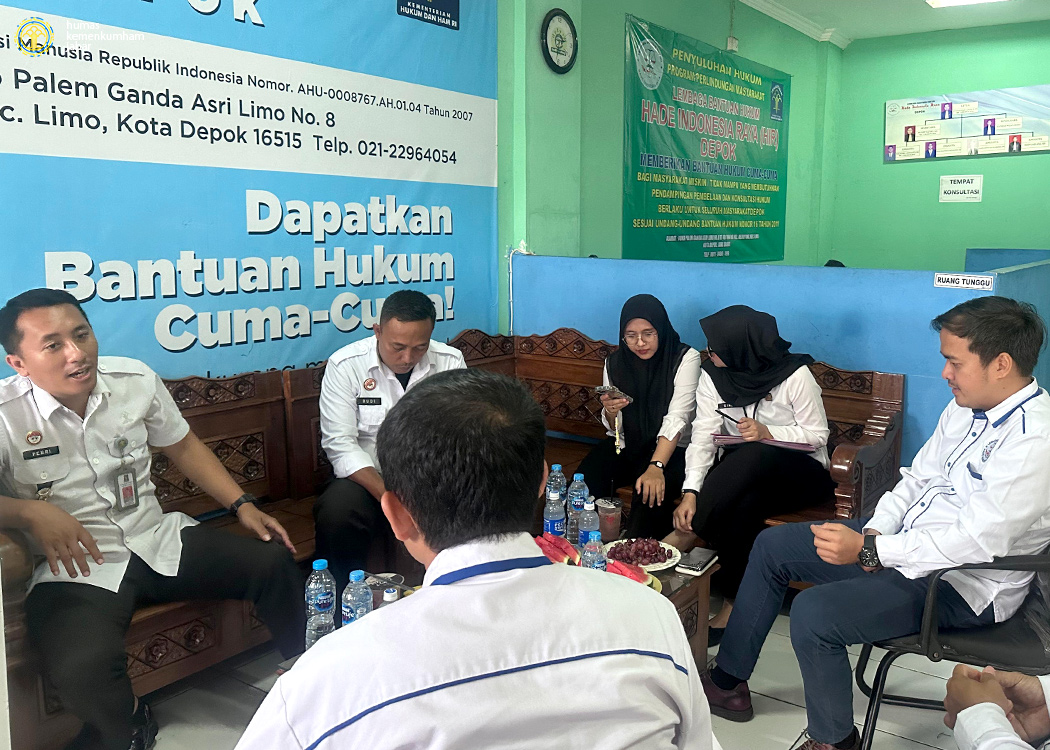 BOGOR/DEPOK – Kantor Wilayah Kementerian Hukum dan HAM Jawa Barat (Kanwil Kemenkumham Jabar) pada hari ini kembali melaksanakan kegiatan Pemeriksaan Faktual Lapangan Pemberi Bantuan Hukum (PBH) pada wilayah Kabupaten Bogor dan Kota Depok yang memasuki hari ke-3 (Rabu, 04/09/2024). Kegiatan ini dilaksanakan sebagian bagian dari rangkaian Perpanjangan Sertifikasi PBH yang merupakan proses verifikasi dan akreditasi ulang terhadap PBH yang telah terakreditasi pada periode akreditasi 3 (tiga) tahun sebelumnya, yaitu tahun 2022 - 2024.
