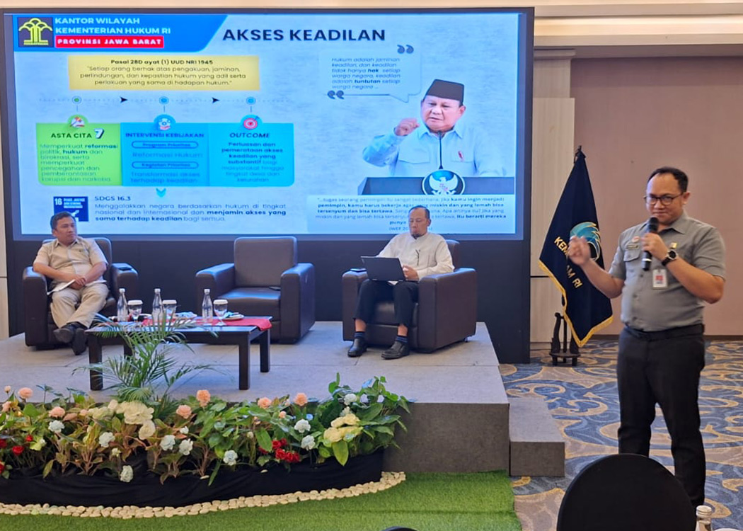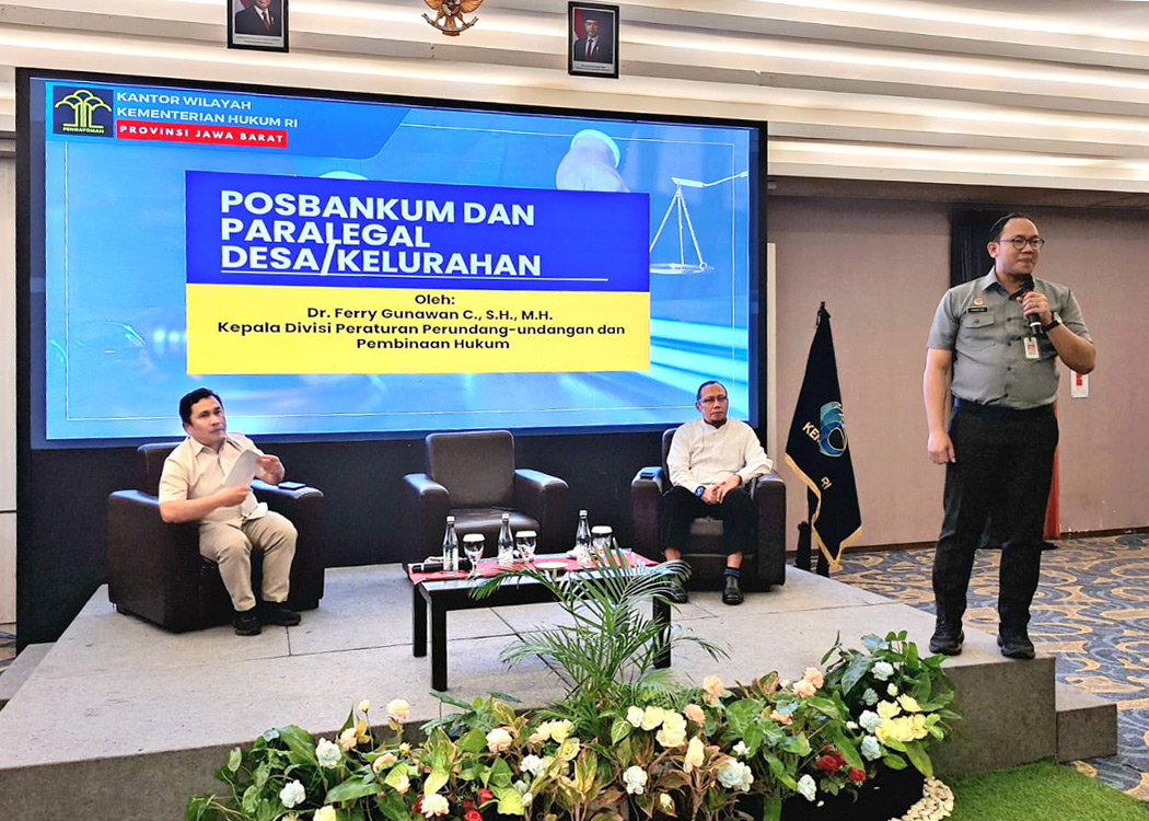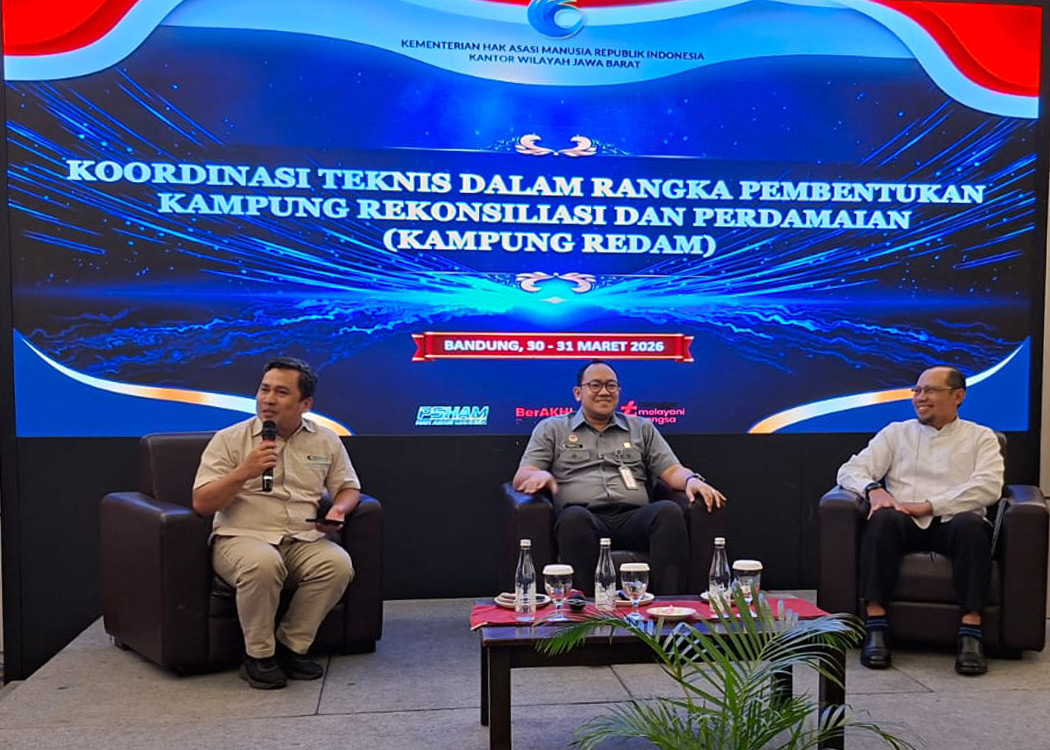 BANDUNG - Kepala Divisi Peraturan Perundang-undangan dan Pembinaan Hukum Kantor Wilayah Kementerian hukum Jawa Barat (Kadiv P3H Kanwil Kemenkum Jabar) Ferry Gunawan C. menjadi narasumber dalam kegiatan Agenda Koordinasi Teknis Persiapan Pembentukan Kampung Rekonsiliasi dan Perdamaian (Kampung Redam) di tingkat Desa/Kelurahan Wilayah Jawa Barat yang diselenggarakan oleh Kanwil Kementerian HAM Jawa Barat (Senin, 31/03/2026).