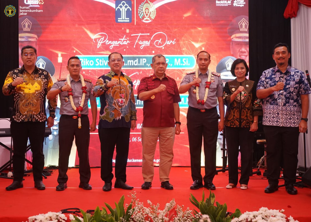 Gunung Sindur – Suasana haru bercampur bangga menyelimuti acara Pisah Sambut Kepala Lembaga Pemasyarakatan (Lapas) Khusus Kelas IIA Gunung Sindur dari Riko Steven kepada Wahyu Indarto, pada hari ini (Jumat, 06/09/2024). Acara ini dihadiri oleh berbagai stakeholder, mulai dari Pimpinan Tinggi Pratama Kanwil Kemenkumham Jabar Kepala Divisi Pemasyarakatan Robianto bersama Kepala Divisi Keimigrasian Filianto Akbar, Pejabat Struktural, Fokopimda Kabupaten Bogor sampai jajaran pegawai memberikan penghormatan kepada pimpinan lama serta menyambut dengan antusias kepala lapas yang baru.
