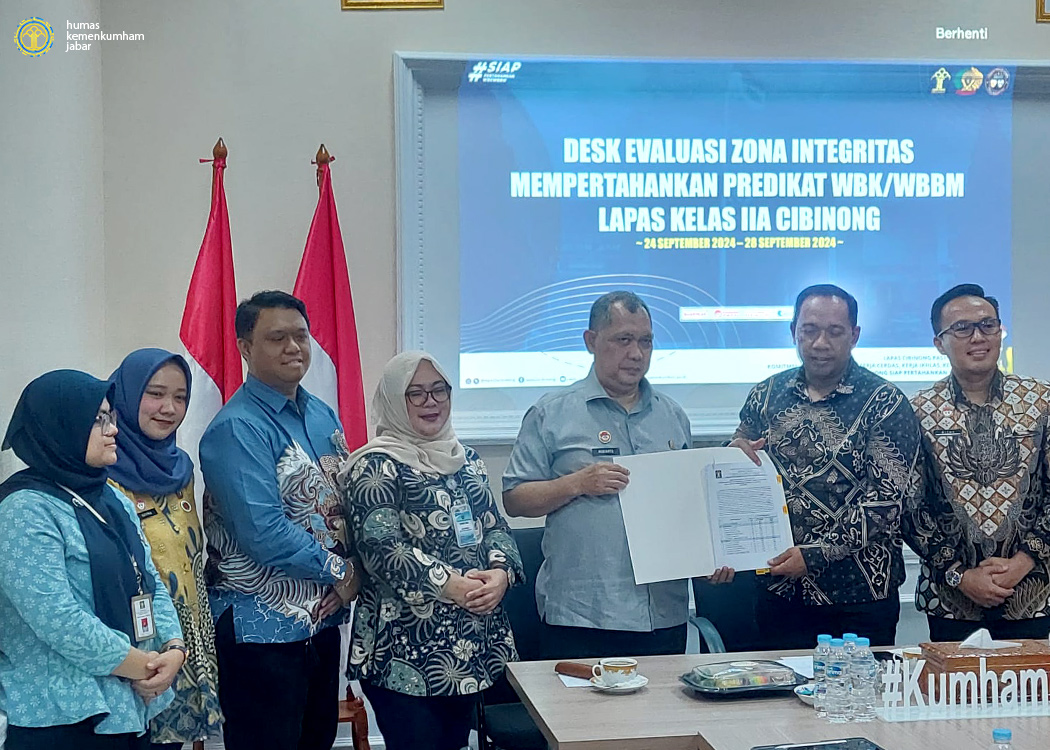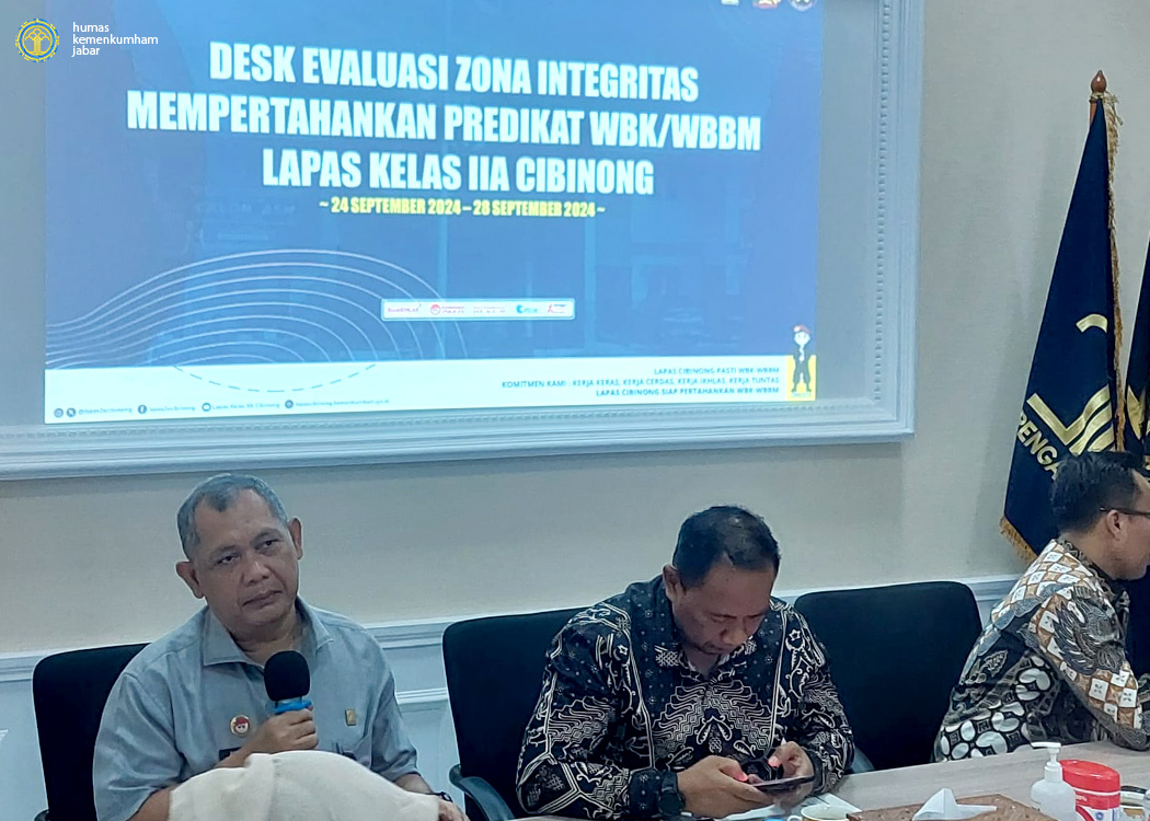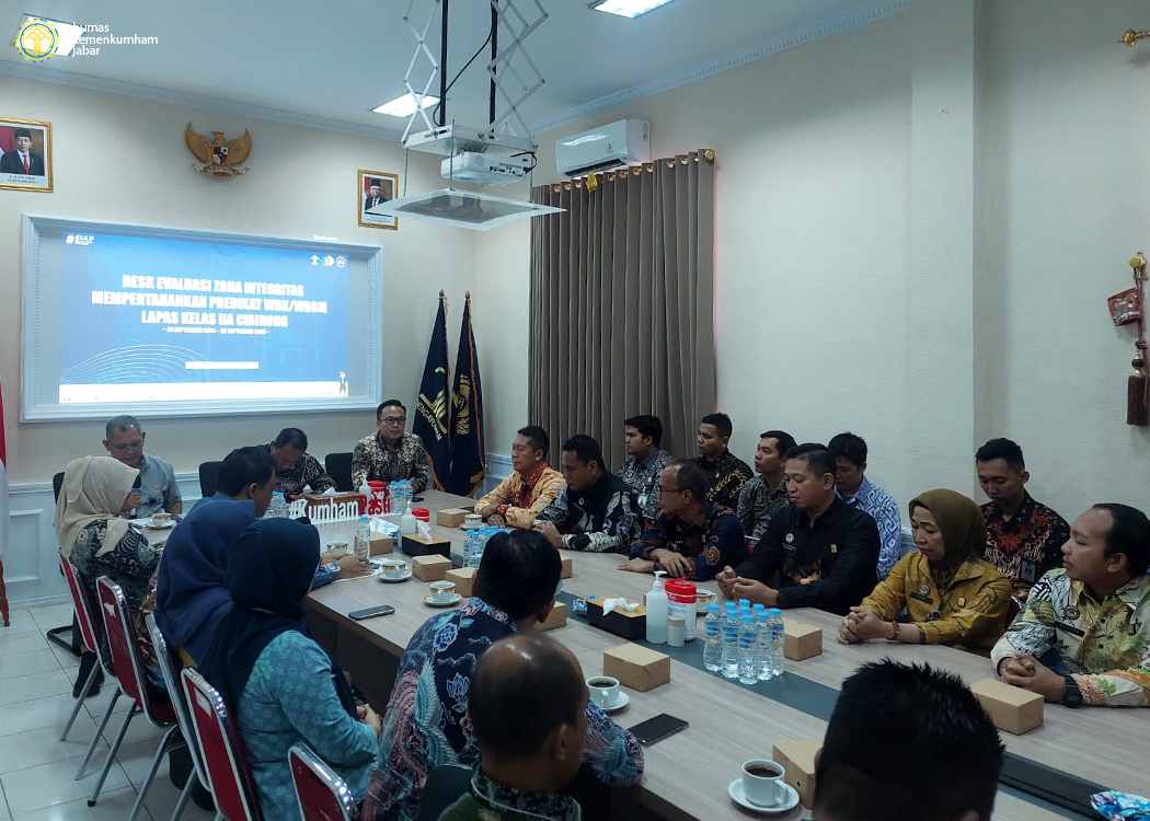 CIBINONG – Kepala Divisi Pemasyarakatan Kementerian Hukum dan HAM Jawa Barat (Kadivpas Kemenkumham Jabar) Robianto pada hari ini melaksanakan Exit Meeting Kegiatan Monitoring dan Evaluasi (Monev) dari Tim Inspektorat Jenderal Kemenkumhan terhadap Unit Pelaksana Teknis (UPT) Kemenkumham Jabar yaitu Lapas Kelas IIA Cibinong (Jumat, 27/09/2024). Monev oleh Inspektorat Jenderal ini dilaksanakan terhadap Lapas Cibinong yang telah mempertahankan predikat Wilayah Birokrasi Bersih Melayani (WBBM) selama 2 tahun. Lapas Cibinong merupakan salah satu UPT Kemenkumham di bawah naungan Kakanwil Masjuno.