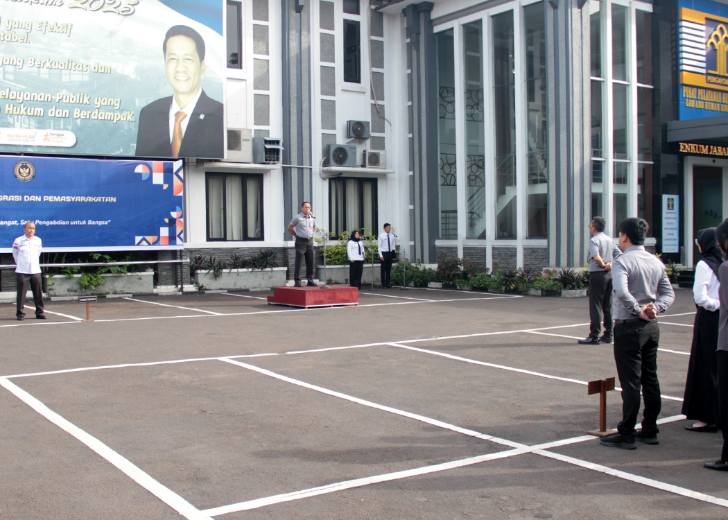 BANDUNG – Kantor Wilayah Kementerian Hukum Jawa Barat (Kanwil Kemenkum Jabar) bersama dengan Kanwil Kementerian HAM Jawa Barat dan Kanwil Direktorat Jenderal Imigrasi Jawa Barat pada pagi ini melaksanakan rutinitas apel pagi bersama yang bertempat di lapangan gedung Kanwil Jabar (Senin, 24/11/2025).
