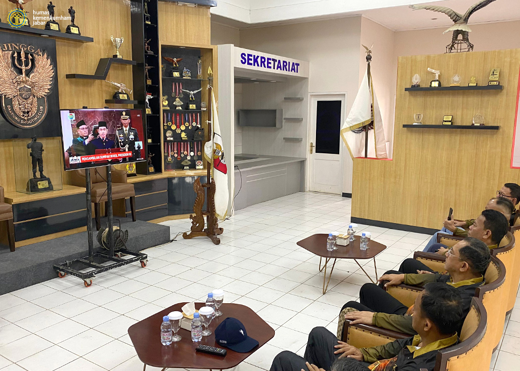 BANDUNG - Kepala Kantor Wilayah Kementerian Hukum dan HAM Jawa Barat (Kakanwil Kemenkumham Jabar) Masjuno pada hari ini mengikuti secara daring melalui live-streaming jalannya pelantikan Presiden dan wakil Presiden Republik Indonesia periode 2024 - 2029. Kakanwil Masjuno bersama Kepala Divisi Keimigrasian Filianto Akbar dan para pejabat Divisi Keimigrasian menyimak jalannya pelantikan di sela - sela kegiatan Pelatihan Menembak Divisi Keimigrasian Lingkungan Kemenkumham Jabar yang bertempat di di Lapangan Tembak Jingga, Mako Kopasgat, Lanud Sulaiman, Kabupaten Bandung (Minggu, 20/10/2024).
