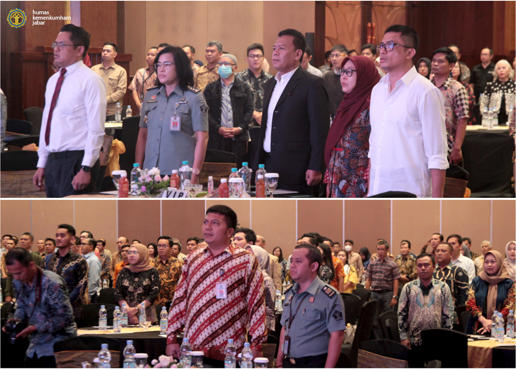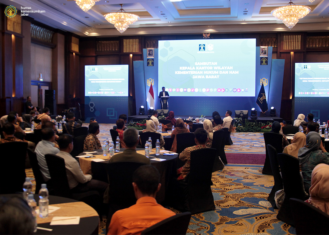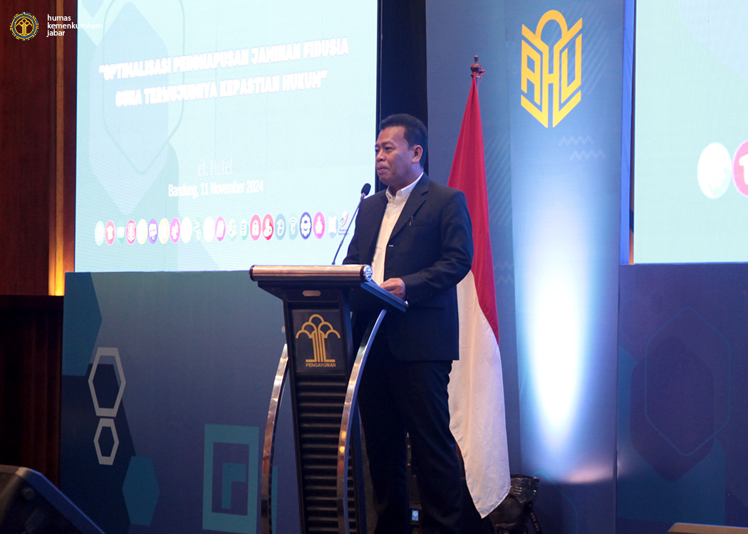 Bandung – Kepala Kantor Wilayah Kementerian Hukum dan HAM Jawa Barat (Kakanwil Kemenkumham Jabar) Masjuno didampingi oleh Kepala Bidang Pelayanan Hukum Ave Maria Sihombing dan Kepala Subbidang Pelayanan Administrasi Hukum Umum (AHU) Zaki Fauzi Ridwan pada pagi hari ini menghadiri pembukaan kegiatan Bimbingan Teknis Jaminan Fidusia dengan Masyarakat dan/atau Pelaku Usaha yang diselenggarakan oleh Direktorat Jenderal AHU dan bertempat di El Hotel Bandung (Senin, 11/11/2024).