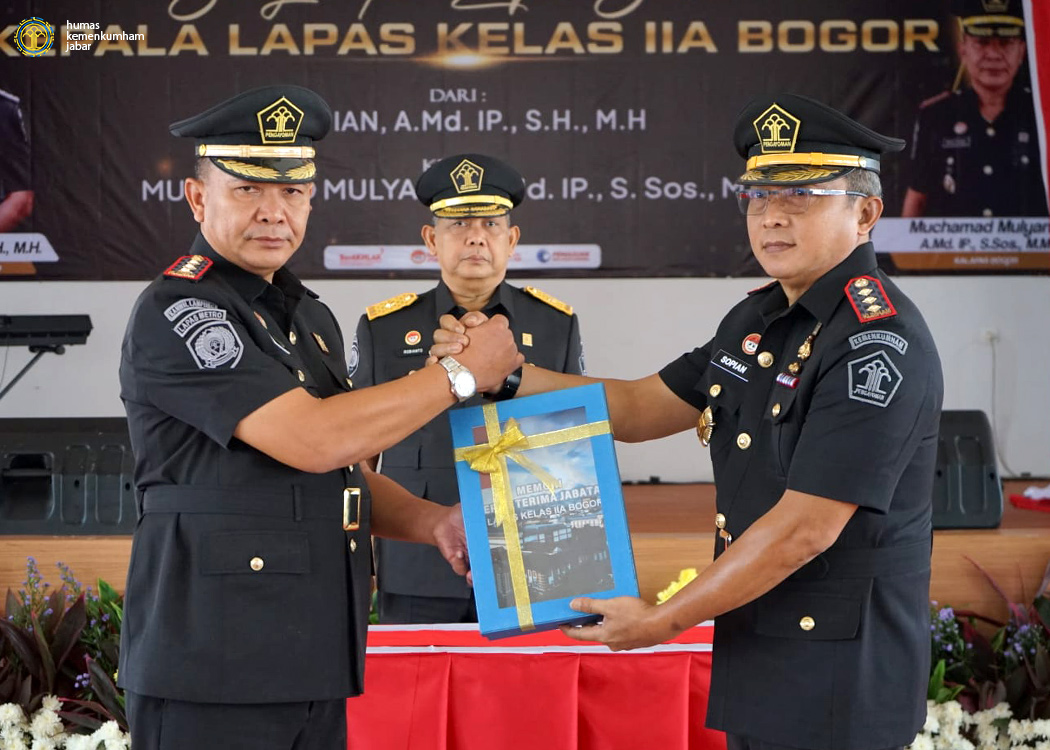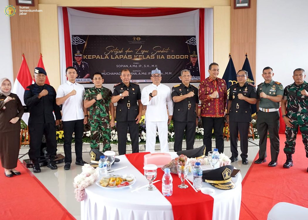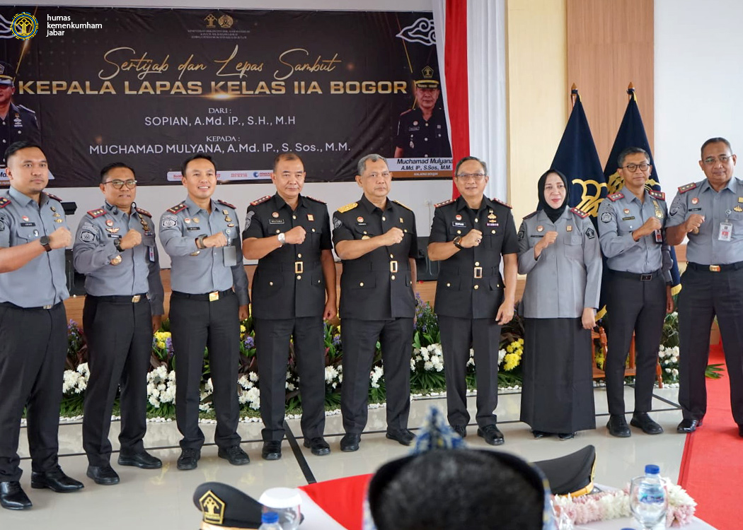 Bogor - Lembaga Pemasyarakatan Kelas IIA Bogor hari ini (Kamis, 05/09/2024) resmi mengalami pergantian tampuk kepemimpinan. Serah Terima Jabatan Kepala Lembaga Pemasyarakatan Kelas IIA Bogor berlangsung di Graha Sahardjo Lapas Kelas IIA Bogor, Serah Terima Jabatan Kepala Lembaga Pemasyarakatan Kelas IIA Bogor dihadiri Kepala Divisi Pemasyarakatan (Kadivpas) Robianto, Kepala UPT SE Bogor Raya, Forkopimda Kota Bogor, Stakeholder, Pegawai Lapas Kelas IIA Bogor, Ibu-ibu Dharma Wanita Persatuan Lapas Kelas IIA Bogor, serta tamu undangan lainnya.