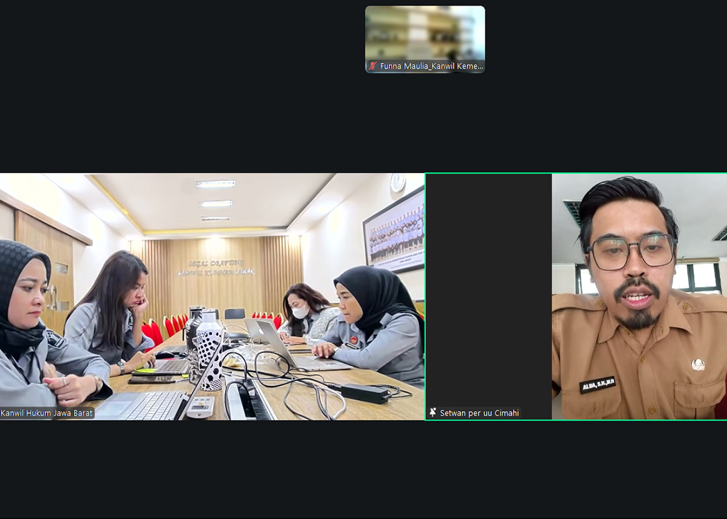 BANDUNG – Kantor Wilayah Kementerian Hukum Jawa Barat (Kanwil Kemenkum Jabar) melalui Divisi P3H pada siang ini melaksanakan Rapat Harmonisasi terhadap 2 Rancangan Peraturan Daerah (Raperda) Kota Cimahi serta Harmonisasi pencabutan 4 Peraturan Daerah (Perda) Kota Cimahi secara virtual melalui Zoom Meeting (Selasa, 09/12/2025).