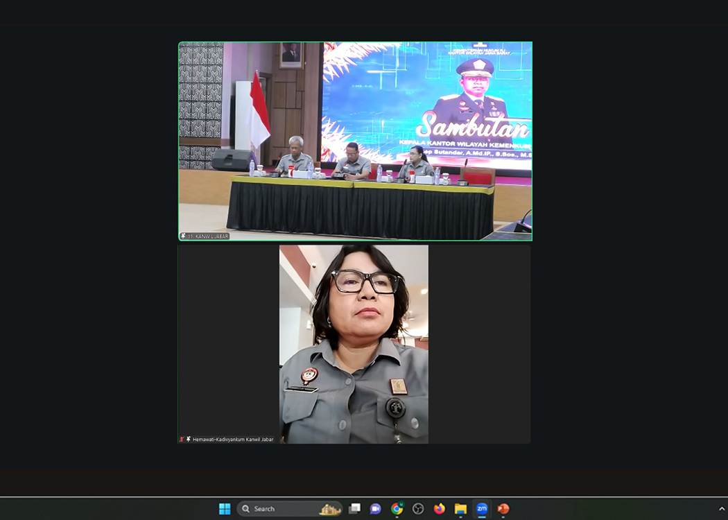 Pada aula, Kepala Kantor Wilayah Asep Sutandar bersama Kepala Bidang Pelayanan AHU Ave Maria Sihombing hadir dalam kegiatan yang menghadirkan narasumber dari Ditjen AHU dan mengundang PPNS di wilayah Jawa Barat, selain itu Kepala Divisi Pelayanan Hukum Hemawati BR Pandia juga turut mengikuti kegiatan secara daring melalui Zoom Meeting dari tempat kerja.