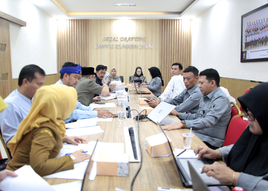 BANDUNG – Kantor Wilayah Kementerian Hukum Jawa Barat (Kanwil Kemenkum Jabar) pada pagi hari ini menerima kunjungan kerja oleh perwakilan DPRD dan Pemerintah Daerah Kabupaten Garut untuk melaksanakan Rapat Harmonisasi terhadap 2 Rancangan Peraturan Daerah (Raperda) Kabupaten Garut (Selasa, 21/10/2025).