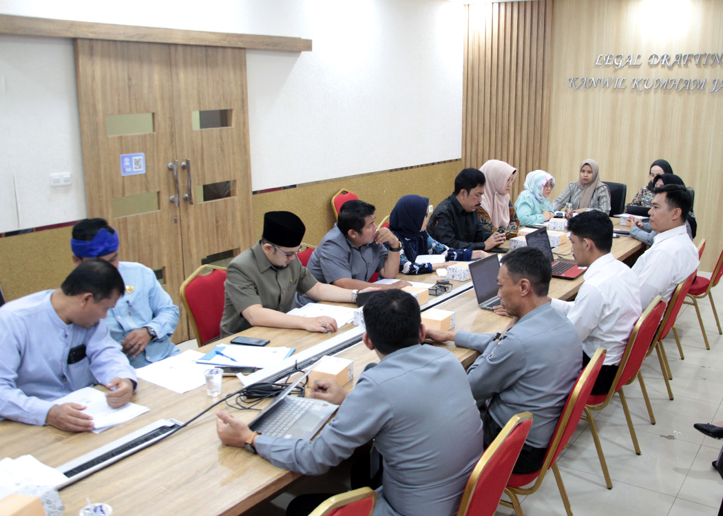 Pada ruang rapat Ismail Saleh, Kanwil Jabar, Kepala Divisi P3H Funna Maulia Masaile bersama para Perancang PUU Kanwil Jabar menerima langsung kehadiran tim DPRD dan Pemda Kabupaten Garut yang dipimpin oleh Wakil Ketua Bapemperda Ghea Afrilia.