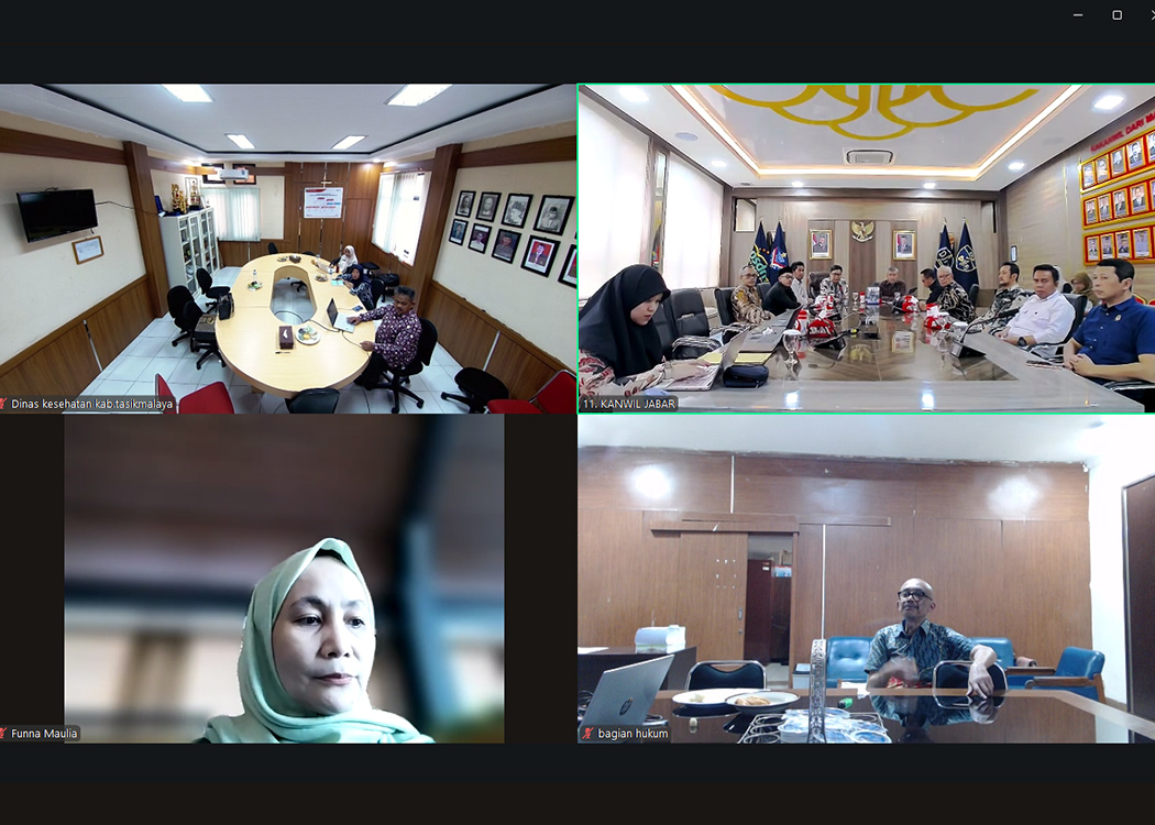 Pada ruang rapat Sahardjo, Kanwil Jabar Perancang PUU Ahli Madya Harun Surya dan para Perancang PUU Kanwil Jabar menerima langsung kedatangan tim DPRD Kabupaten Tasikmalaya, Kepala Divisi P3H Funna Maulai Masaile juga turut hadir secara daring dari tempat kerja beliau. Dalam rapat kali ini dibahas Raperda tentang Sistem Kesehatan Daerah di Kabupaten Tasikmalaya.