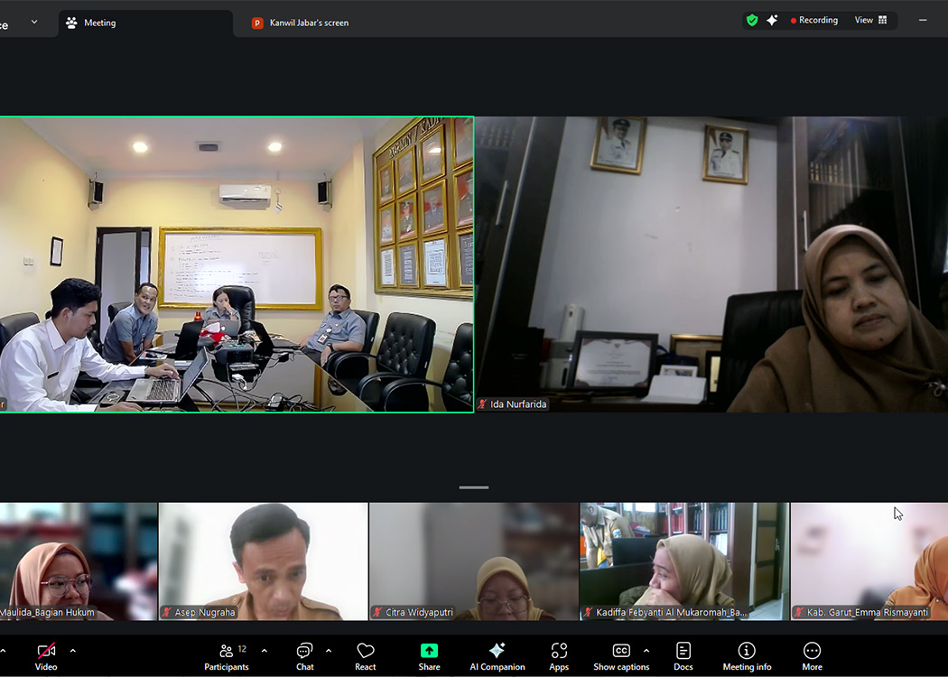 BANDUNG - Kantor Wilayah Kementerian Hukum Jawa Barat (Kanwil Kemenkum Jabar) melalui tim kerja Perancang Peraturan Perundang-undangan melaksanakan Rapat Pra-Harmonisasi terhadap 2 Rancangan Peraturan Bupati (Raperbup) Kabupaten Garut secara daring melalui Zoom Meeting (Selasa, 07/04/2026).