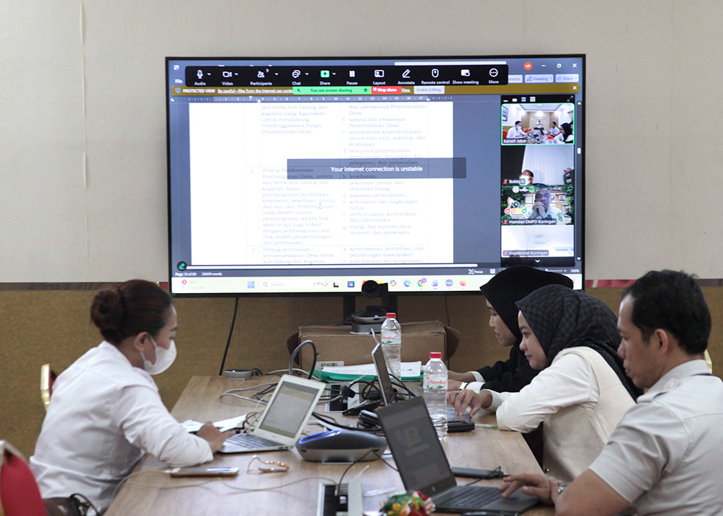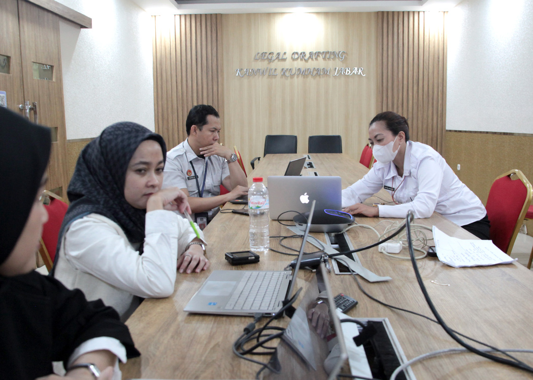 Pada ruang rapat Ismail Saleh, Kanwil Jabar, Perancang PUU Kanwil Jabar Shendy, Visy dan Erdian bersama para Perancang PUU Kanwil Jabar melaksanakan rapat harmonisasi bersama Perangkat Daerah Pemkab Kuningan membahas Raperbup Tentang Pedoman Penyusunan Anggaran Pendapatan dan Belanja Desa (APBDes) tahun 2026.