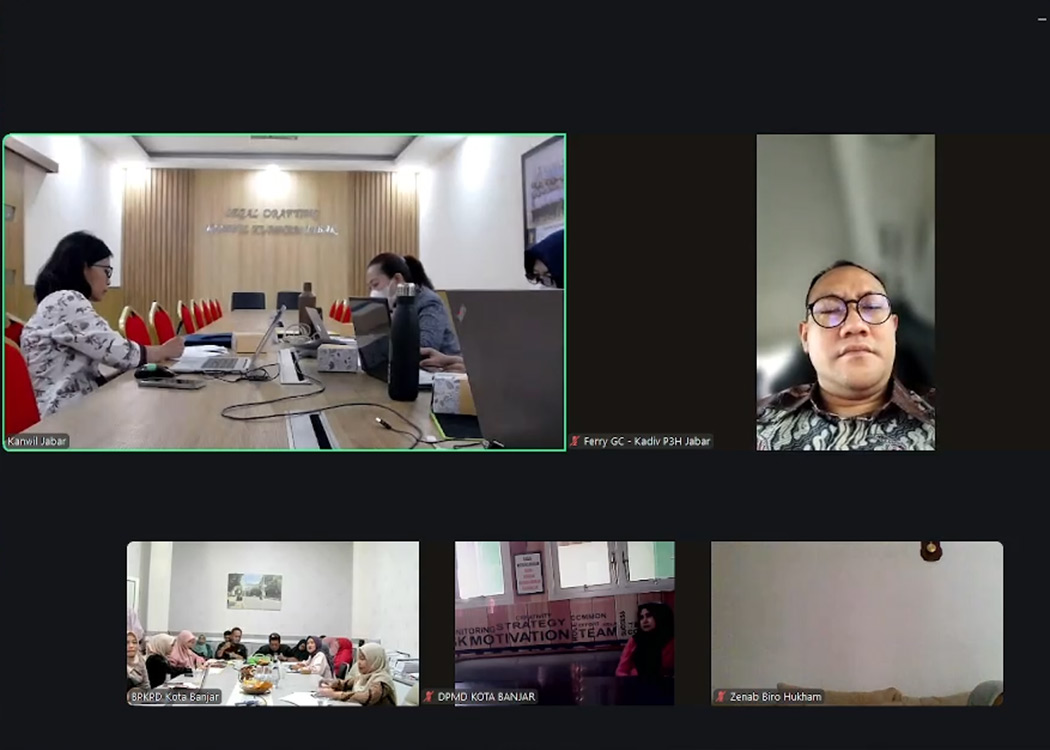 BANDUNG – Kantor Wilayah Kementerian Hukum Jawa Barat (Kanwil Kemenkum Jabar) melalui Divisi P3H pada siang ini melaksanakan Rapat Harmonisasi terhadap 2 Rancangan Peraturan Daerah (Raperda) dan 5 Rancangan Peraturan Kepala Daerah (Raperkada) Kota Banjar secara daring melalui Zoom Meting (Kamis, 5/2/2026).