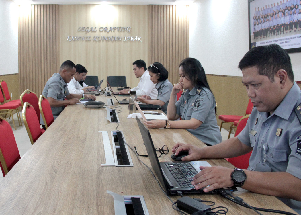 Dari ruang rapat Ismail Saleh, Kanwil Jabar, Perancang PUU Madya Nevrina Hastuti bersama para Perancang PUU Kanwil Jabar melaksanakan Rapat Harmonisasi secara virtual bersama Perangkat Daerah Pemerintah Kabupaten Ciamis. Pada rapat kali ini Kepala Divisi P3H Funna Maulia Masaile juga turut hadir secara daring dari tempat kerja membuka jalannya rapat harmonisasi ini.