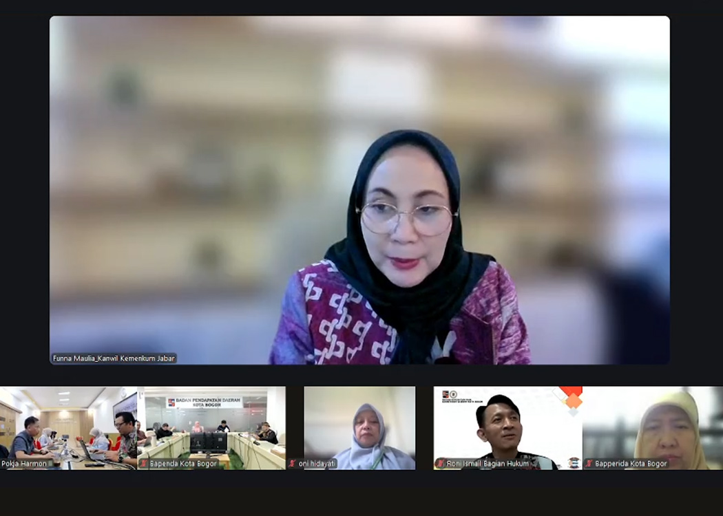 BANDUNG – Kantor Wilyah Kementerian Hukum Jawa Barat (Kanwil Kemenkum Jabar) pada pagi ini melaksanakan Rapat Harmonisasi terhadap 3 Rancangan Peraturan Wali Kota (Raperwal) Kota Bogor bersama perwakilan Pemerintah Kota Bogor yang diselenggarakan daring melalui ruang virtual Zoom Meeting (Kamis, 23/10/2025).