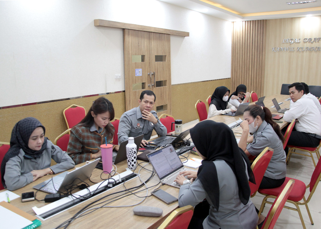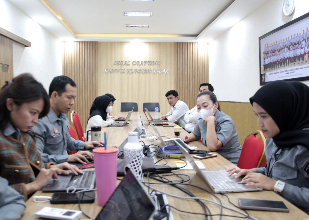 Dari ruang rapat Ismail Saleh, Kanwil Jabar, Perancang PUU Kanwil Jabar Shendy, Nova, Visy dan Erdian melaksanakan rapat harmonisasi bersama perwakilan Pemkot Cimahi membahas Raperwal tentang Unit Pelaksana Teknis Daerah (UPTD) Pengamanan dan Pemanfaatan Barang Milik Daerah, Raperwal tentang Perubahan Tugas, Fungsi dan Rincian Tugas pada Perangkat Daerah Kota Cimahi, serta Raperwal tentang Kelas Jabatan.