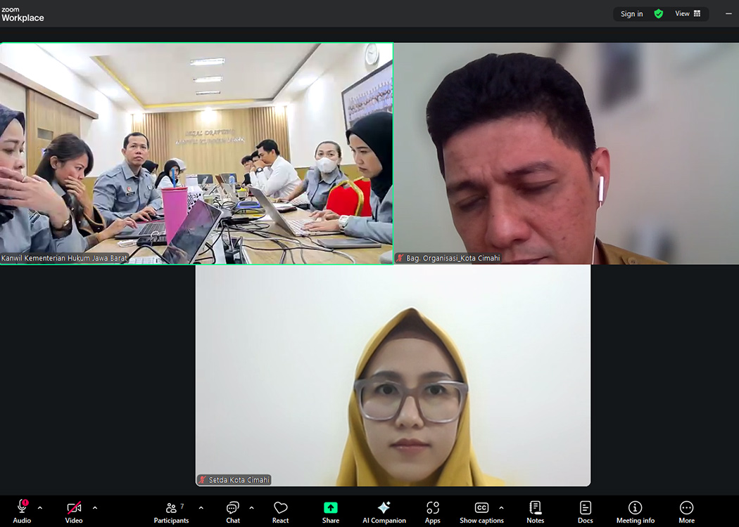 BANDUNG – Kantor Wilayah Kementerian Hukum Jawa Barat (Kanwil Kemenkum Jabar) melalui Divisi P3H pada pagi ini melaksanakan Rapat Harmonisasi terhadap 3 Rancangan Peraturan Wali Kota (Raperwal) Kota Cimahi secara daring melalui Zoom Meeting bersama dengan Pemerintah Daerah Kota Cimahi (Selasa, 02/12/2025).