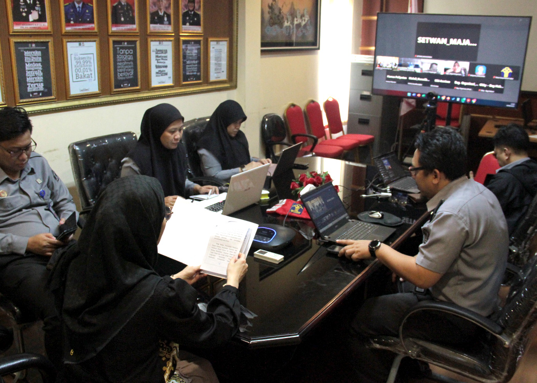 Dari ruang rapat Suhendro Hendarsin, Kanwil Jabar, Kepala Divisi P3H Funna Maulia Masaile dan para Perancang PUU Kanwil Jabar melaksanakan Rapat Harmonisasi bersama Perangkat Daerah Pemkab Majalengka melalui Zoom Meeting.