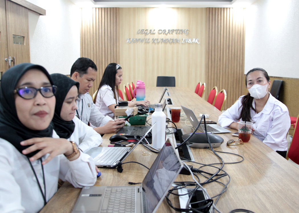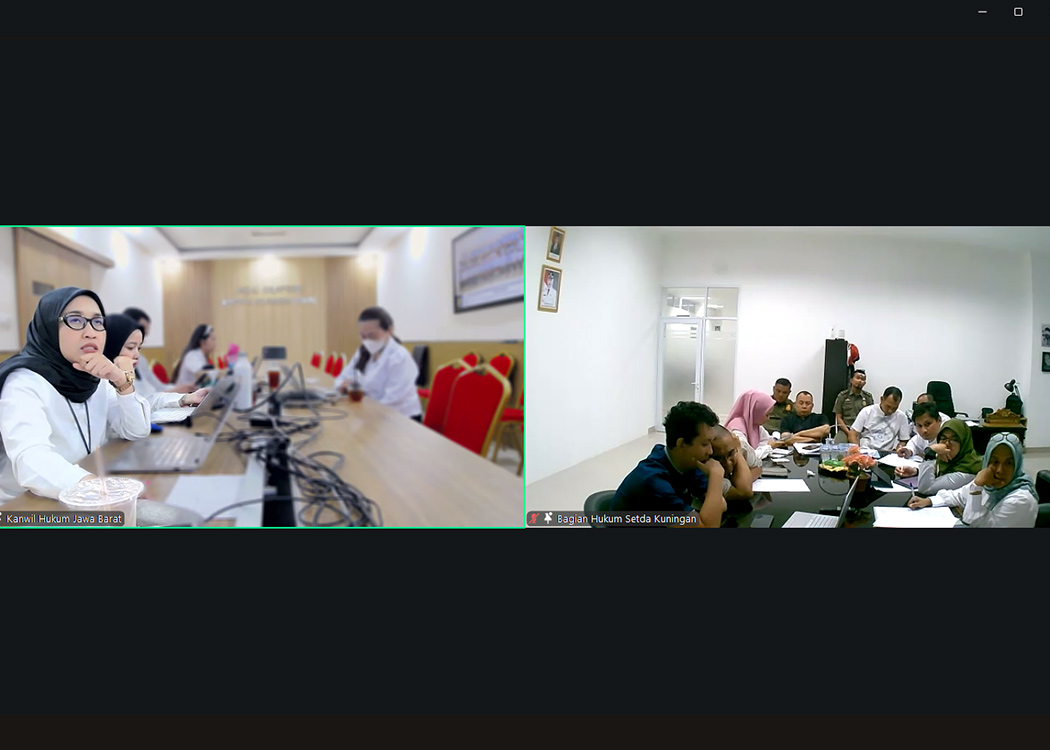 Dari ruang rapat Ismail Saleh, Kanwil Jabar, Perancang PUU Kanwil Jabar Shendy, Anggriana dan Erdian bersama para Perancang PUU Kanwil Jabar melaksanakan rapat dengan Perangkat Daerah Pemkab Kuningan membahas Raperda tentang tentang Penyelenggaraan Kawasan Tertib dan Raperbup tentang Pedoman Program Beasiswa Santri.