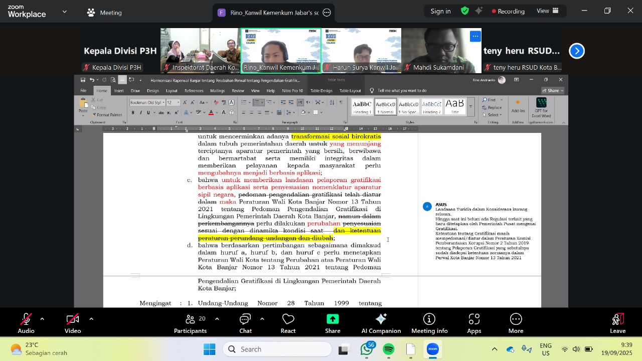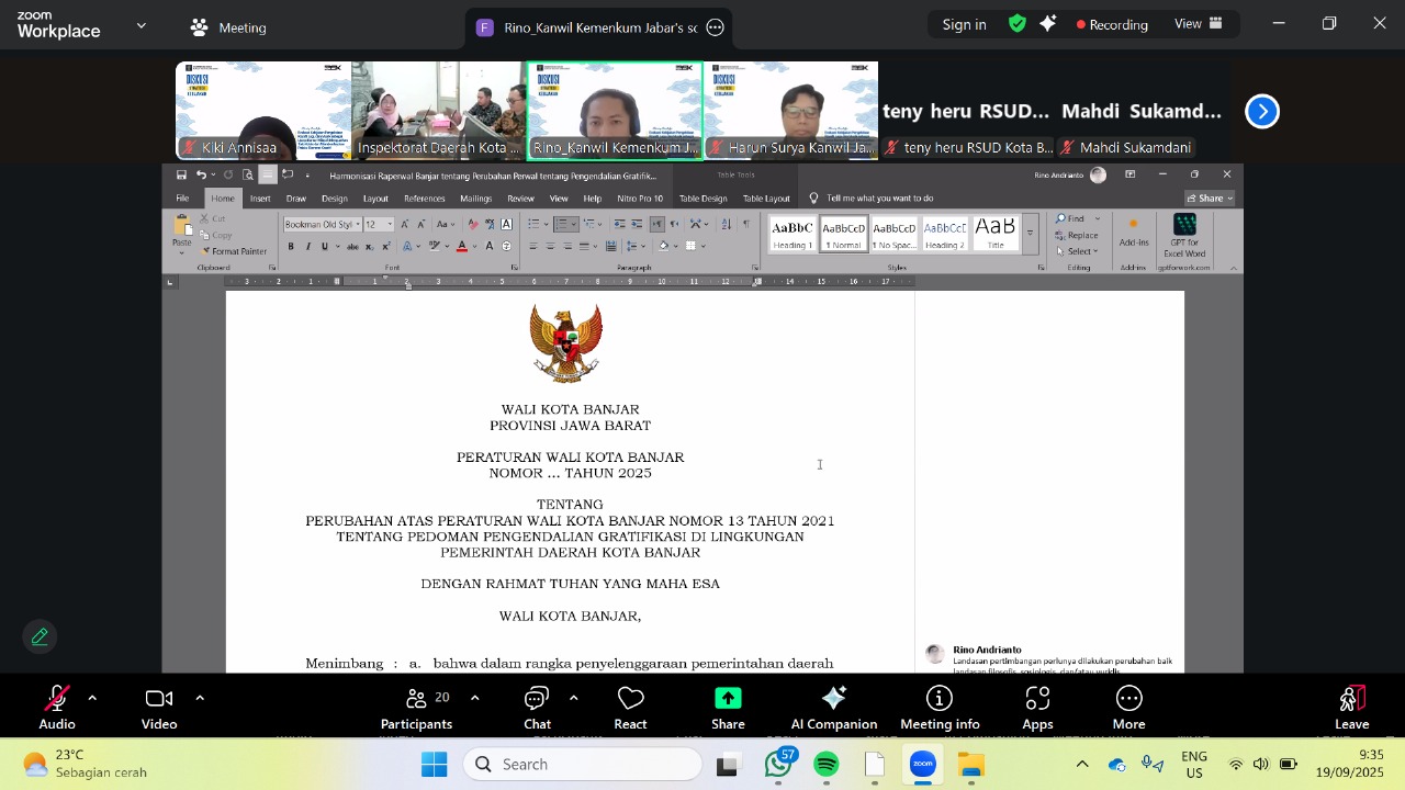 BANDUNG - Kantor Wilayah Kementerian Hukum Jawa Barat (Kanwil Kemenkum Jabar) pada pagi ini melaksanakan Rapat Harmonisasi terhadap Rancangan Peraturan Daerah (Raperda) dan Rancangan Peraturan Wali Kota (Raperwal) Kota Banjar bersama Pemerintah Daerah Kota Banjar (Pemkot Banjar) secara daring melalui Zoom Meeting (Jumat 19/09/2025).
