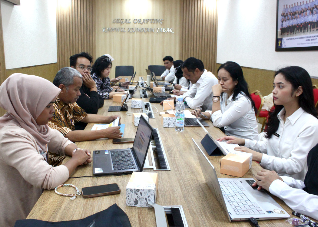 Pada ruang rapat Ismail Saleh, Kanwil Jabar, Perancang PUU Ahli Madya Nevrina Hastuti bersama para Perancang PUU Kanwil Jabar melaksanakan rapat harmonisasi bersama tim Sekretariat Daerah Provinsi Jabar. Adapun Raperda yang dibahas kali ini adalah Raperda tentang Pengelolaan Usaha Pertambangan Mineral.