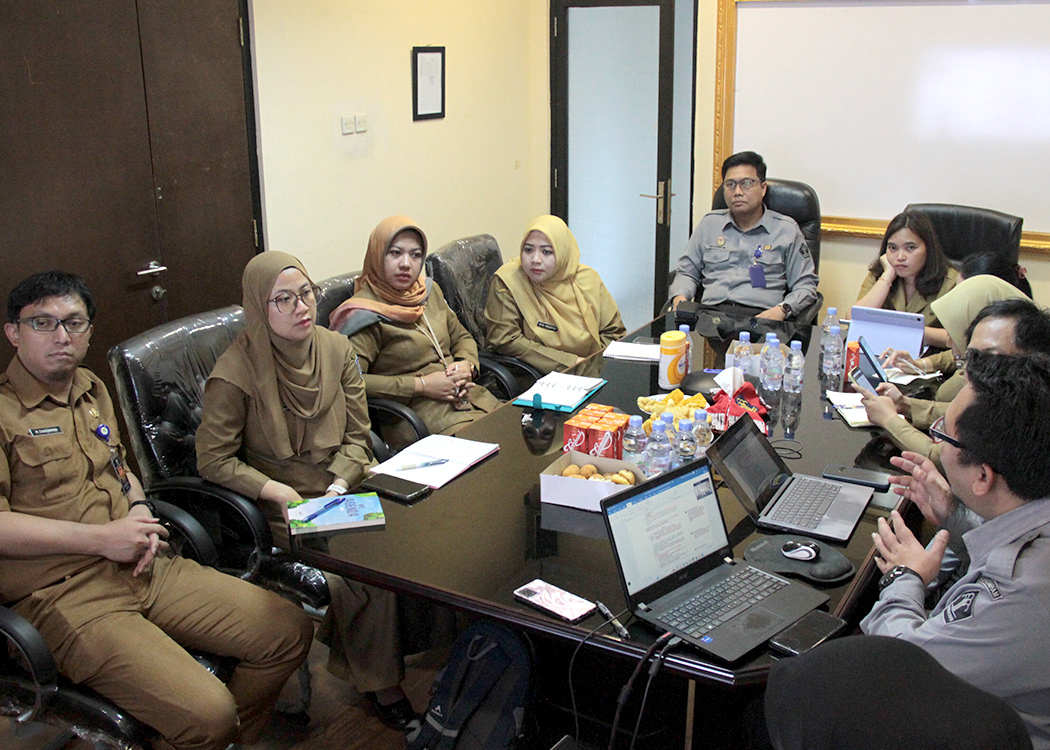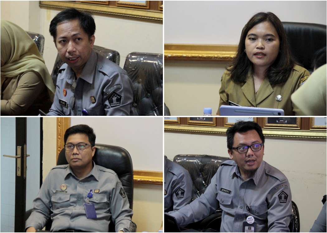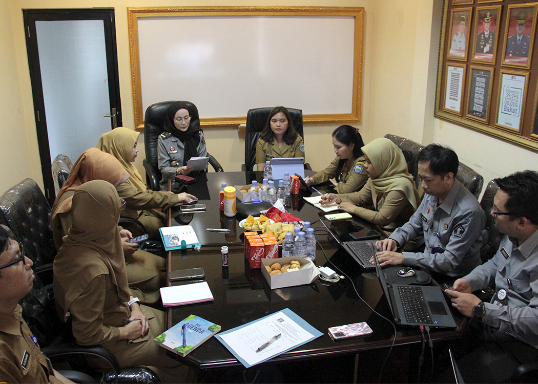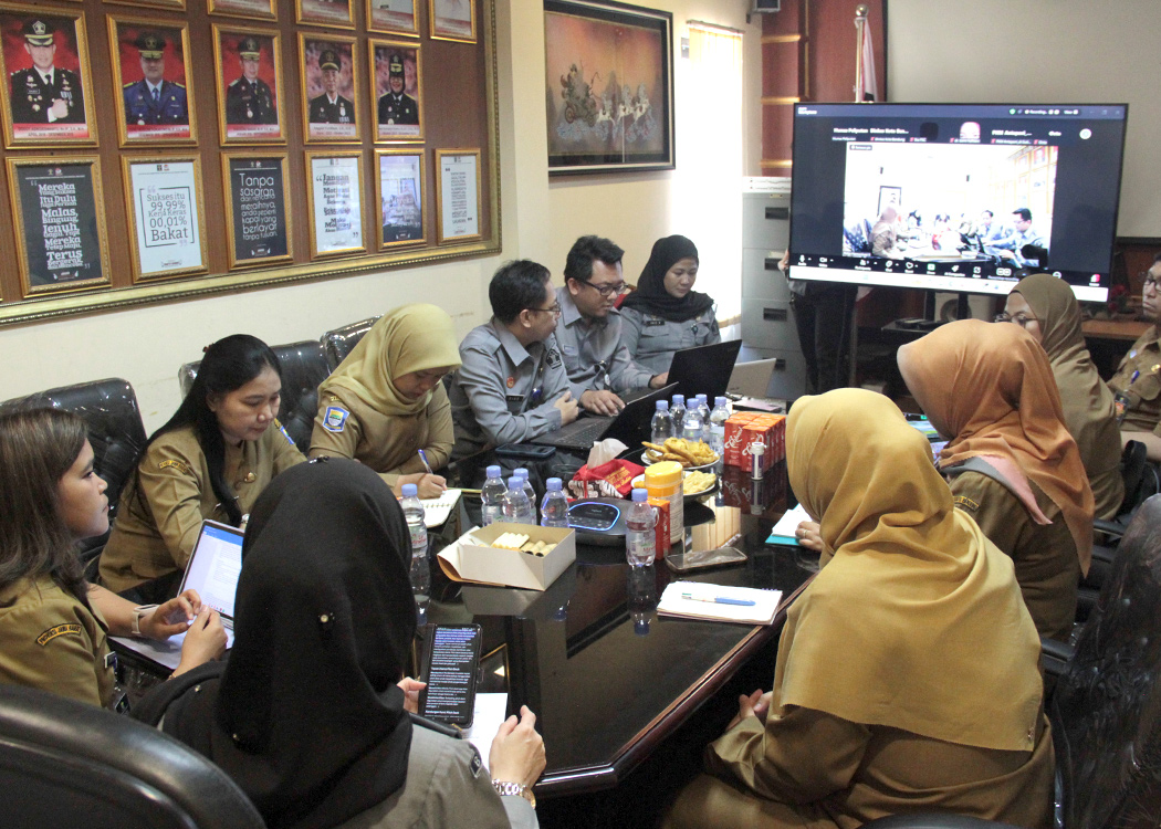 Pada ruang rapat Suhendro Hendarsin, Kanwil Jabar, Kepala Divisi P3H Funna Maulia Masaile bersama Perancang PUU Ahli Madya Harun Surya dan para Perancang PUU Kanwil Jabar menerima langsung kehadiran tim Pemda Kota Bandung.