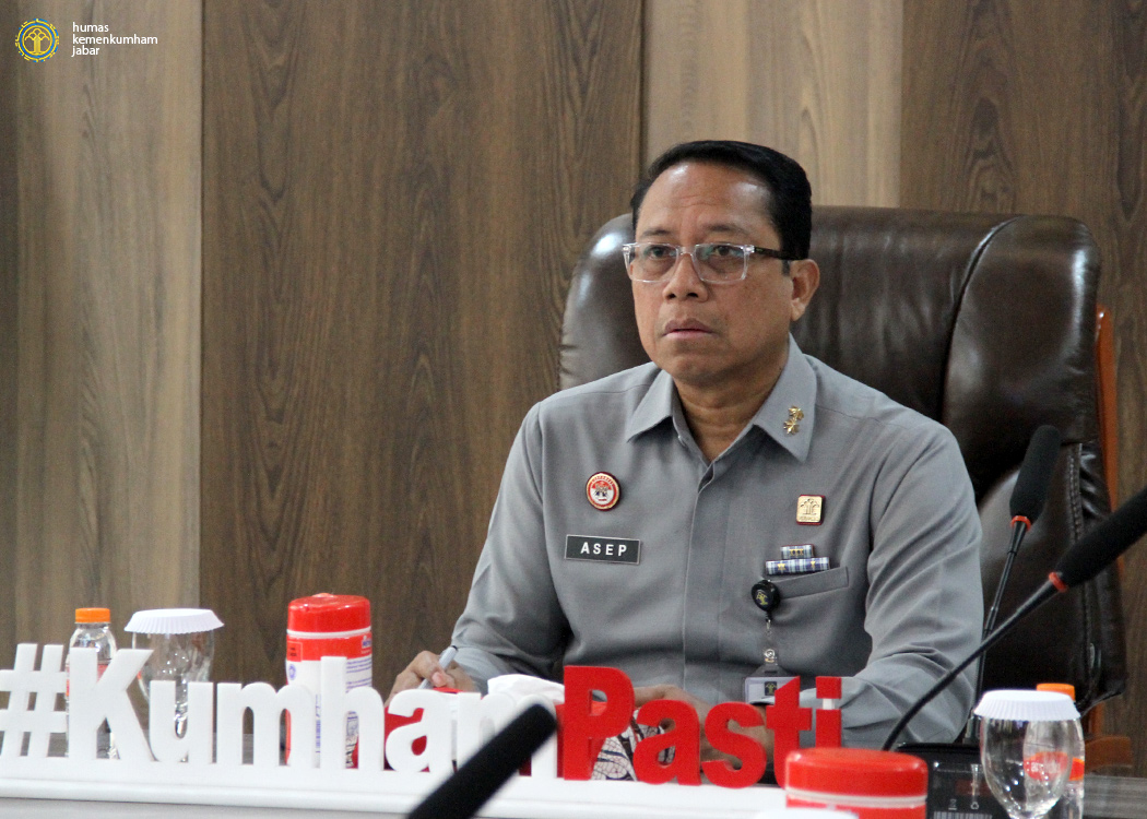 Dari ruang rapat Sahardjo, Kanwil Jabar, Kepala Kantor Wilayah Asep Sutandar bersama Kepala Divisi P3H Funna Maulia dan jajaran pegawai Subbidang FPPHD mengikuti jalannya forum yang dibuka oleh Direktur Jenderal PP Dhahana Putra dan menghadirkan narasumber Direktur Fasilitasi Perancangan Peraturan Daerah Widyastuti dengan materi mengenai Etika Perancang Peraturan Perundang-undangan dan Pembinaan Fasilitasi Perancangan Perda & Perkada.