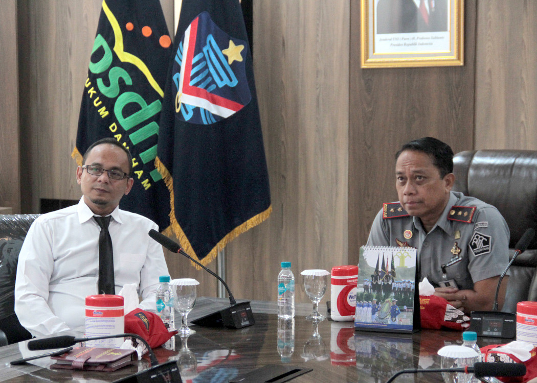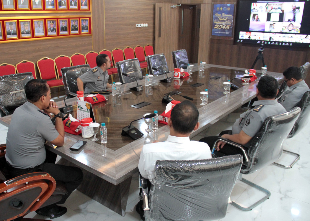 Dari ruang rapat Sahardjo, Kanwil Jabar, Kepala Kantor Wilayah Asep Sutandar bersama Kepala Bagian Umum & TU Archie Tigor Mangunsong melalui Zoom Meeting mengikuti jalannya pembukaan kegiatan yang juga diikuti oleh seluruh Kanwil Kemenkum se-Indonesia.