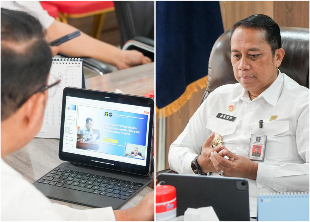 Narasumber Dhahana juga menyampaikan arahan strategis kepada perwakilan Pemda yang hadir secara virtual agar mempertimbangkan penyusunan satu Peraturan Daerah dengan pendekatan omnibus sebagai instrumen penyesuaian. Perda tersebut dimaksudkan untuk mengakomodasi dan melakukan harmonisasi terhadap Peraturan Daerah yang telah berlaku sebelumnya, khususnya yang masih memuat ketentuan pidana yang tidak lagi selaras.