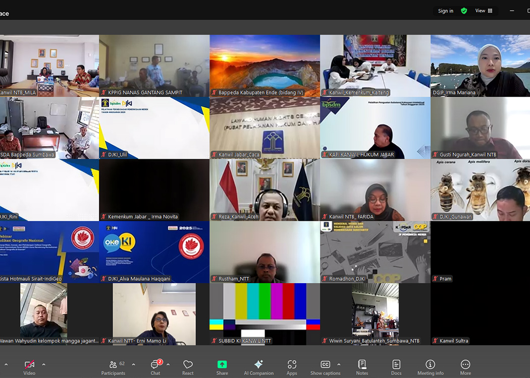 BANDUNG – Kantor Wilayah Kementerian Hukum Jawa Barat (Kanwil Kemenkum Jabar) pada siang ini mengikuti kegiatan Rapat Koordinasi Persiapan Pemeriksaan Substantif Indikasi Geografis yang diselenggarakan oleh Direktorat Jenderal Kekayaan Intelektual (DJKI) secara daring melalui Zoom Meeting (Kamis, 26/06/2025).