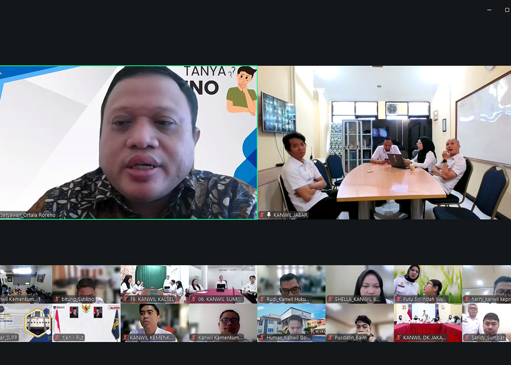 BANDUNG – Kantor Wilayah Kementerian Hukum Jawa Barat (Kanwil Kemenkum Jabar) pada pagi ini mengikuti jalannya rapat sosialisasi Persiapan Penggunaan Aplikasi Survei Kepuasan Masyarakat (SKM) Online yang diselenggarakan oleh Biro Perencanaan & Organisasi Sekretariat Jenderal Kemenkum RI secara daring melalui Zoom Meeting (Rabu, 04/02/2026).