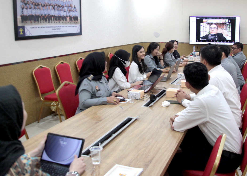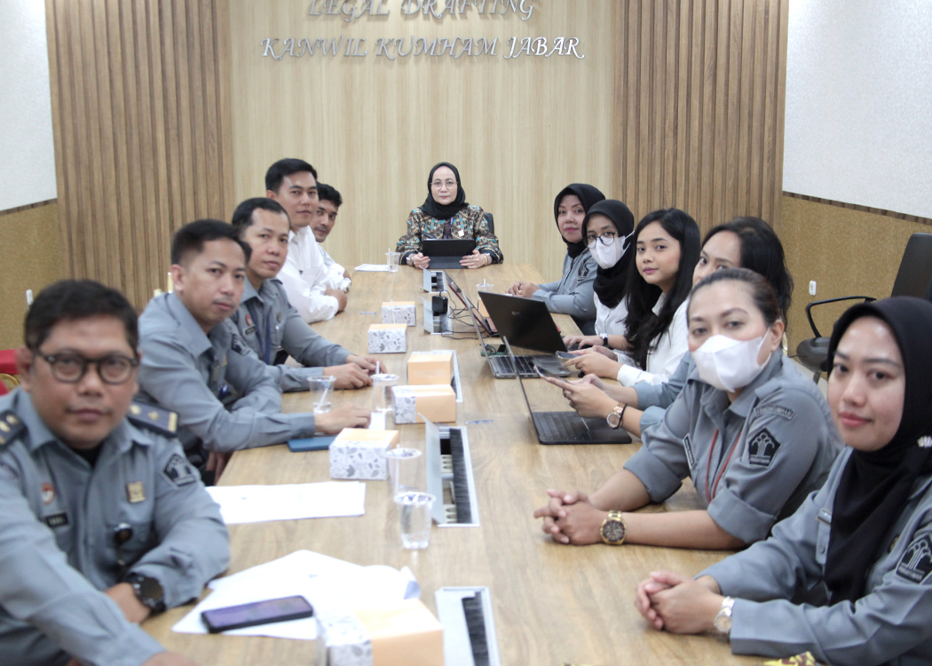 Kepala Divisi P3H Funna Maulia Masaile bersama para Perancang PUU dan Analis Hukum Kanwil Jabar mengikuti jalannya forum diskusi yang menghadirkan Wakil Menteri Hukum Edward Omar Sharif Hiariej selaku narasumber. Pembahasan RUU ini juga diikuti oleh berbagai pihak dan stakeholder seperti Kepolisian RI, Kejaksaan Agung dan akademisi perguruan tinggi.