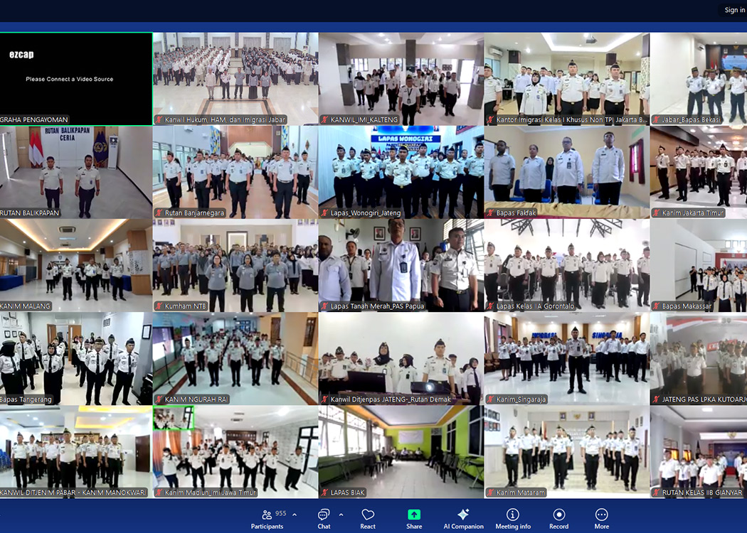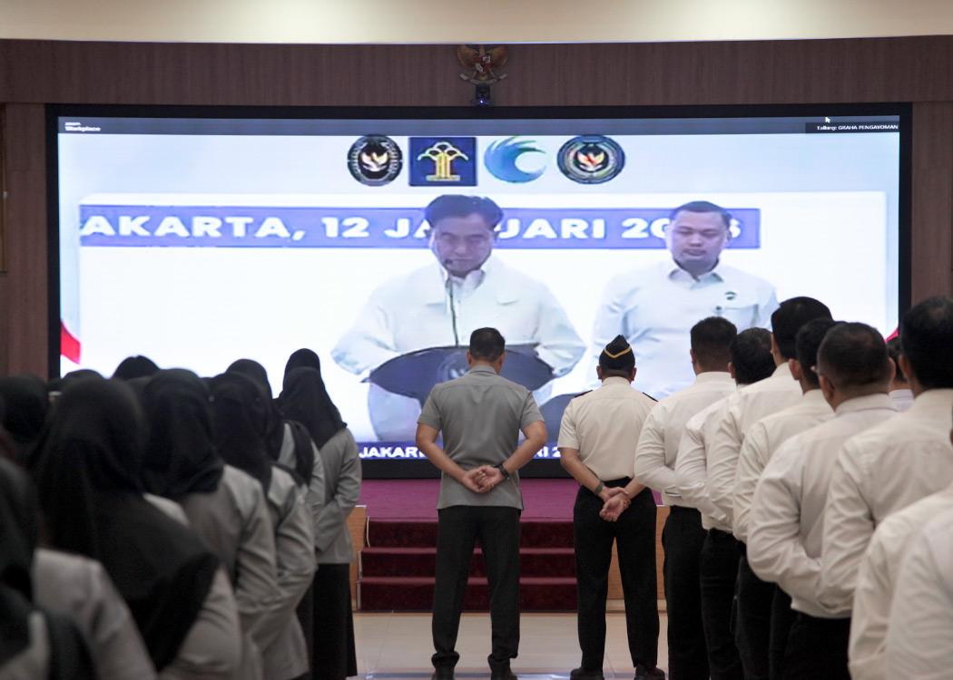 BANDUNG – Kantor Wilayah Kementerian Hukum Jawa Barat (Kanwil Kemenkum Jabar) bersama dengan Kanwil Kementerian HAM Jabar dan Kanwil Ditjen Imigrasi Jabar pada pagi ini mengikuti pelaksanaan kegiatan Apel Bersama Awal Tahun 2026 di Lingkungan Kementerian Koordinator Bidang Hukum, HAM, Imigrasi dan Pemasyarakatan (Kemenko Kumham Imipas) yang diselenggarakan secara daring dan berpusat di Graha Pengayoman, Jakarta (Senin, 12/01/2026).