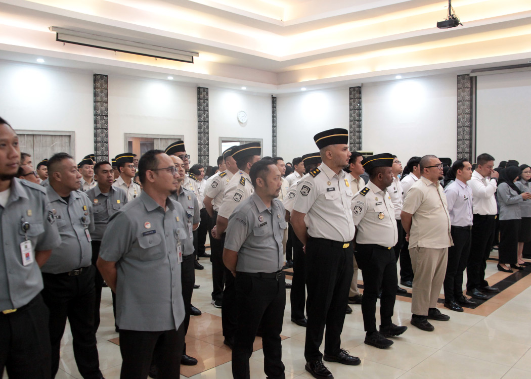 Pada aula Soepomo, Kanwil Jabar, Kepala Kantor Wilayah Asep Sutandar bersama Kakanwil KemenHAM Jabar Hasbullah Fudail, Kakanwil Ditjen Imigrasi Jabar Jaya Saputra, Kepala Divisi P3H Funna Maulia Masaille, Kepala Divisi Pelayanan Hukum Hemawati BR Pandia, serta jajaran pegawai Kanwil Jabar mengikuti Apel Bersama yang dipimpin oleh Menko Kumham Imipas Yusril Ihza Mahendra sebagai pembina apel.