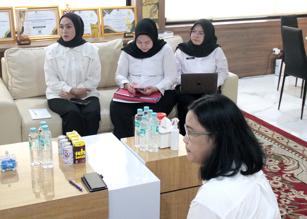 BANDUNG - Kepala Kantor Wilayah Kementerian Hukum Jawa Barat (Kakanwil Kemenkum Jabar) Asep Sutandar bersama Kepala Divisi Pelayanan Hukum Hemawati BR Pandia dan pegawai Bidang Pelayanan Administrasi Hukum Umum (AHU) pada pagi ini menerima kunjungan kerja oleh Inspektur Wilayah IV Bambang Setyabudi dalam rangka melaksanakan koordinasi bersama Sekretariat Majelis Pengawas Wilayah (MPW) Notaris (Rabu, 18/02/2026).