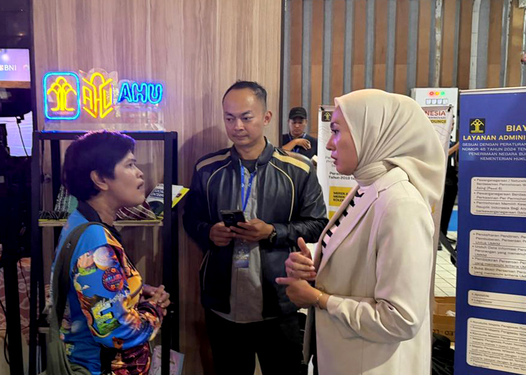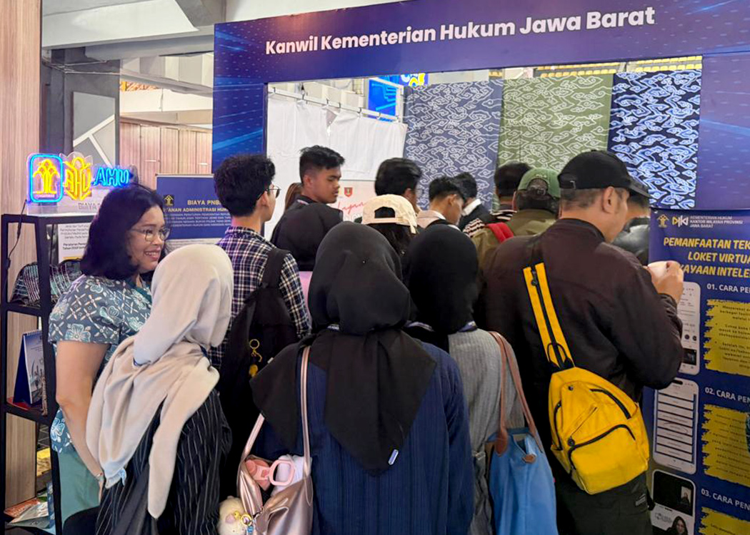 DEPOK - Dalam semarak pelaksanaan kegiatan What’s Up Kemenkum Campus Calls Out di Gedung Balairung Universitas Indonesia, Depok, Bidang Administrasi Hukum Umum (AHU) Kantor Wilayah Kementerian Hukum Jawa Barat (Kanwil Kemenkum Jabar) turut berperan aktif dalam menyukseskan kegiatan melalui pembukaan layanan AHU kepada para peserta kegiatan (Senin, 09/02/2026). Sosialisasi layanan hukum dalam acara ini dilaksanakan oleh Kepala Divisi Pelayanan Hukum Hemawati BR Pandia dan Kepala Bidang Pelayanan AHU Ave Maria Sihombing beserta para pegawai Bidang Peyananan AHU Kanwil Jabar, sesuai dengan arahan oleh Kakanwil Asep Sutandar yang juga turut hadir langsung dalam pelaksanaan sosialisasi kali ini