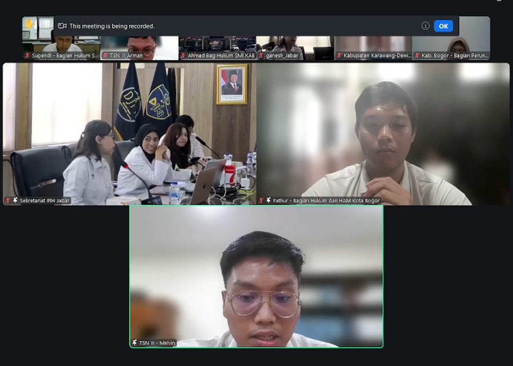 BANDUNG – Kantor Wilayah Kementerian Hukum Jawa Barat (Kanwil Kemenkum Jabar) pada pagi ini melaksanakan sosialisasi Pedoman Penilaian Indeks Reformasi Hukum (IRH) Tahun 2026 kepada Pemerintah Daerah wilayah Jawa Barat secara daring melalui Zoom Meeting (Rabu, 28/01/2026). Sosialisasi ini dilaksanakan sebagai bagian dari persiapan program penilaian IRH yahun 2026 yang digagas oleh Badan Pembinaan Hukum Nasional (BPHN).