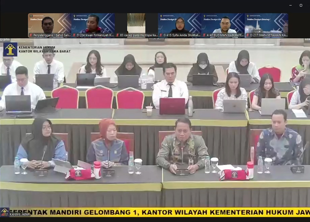 BANDUNG – Kantor Wilayah Kementerian Hukum Jawa Barat (Kanwil Kemenkum Jabar) pada pagi ini menyelenggarakan kegiatan Pelatihan Paralegal Serentak Mandiri Gelombang 1 yang diadakan secara daring melalui Zoom Meeting (Kamis, 09/10/2025).