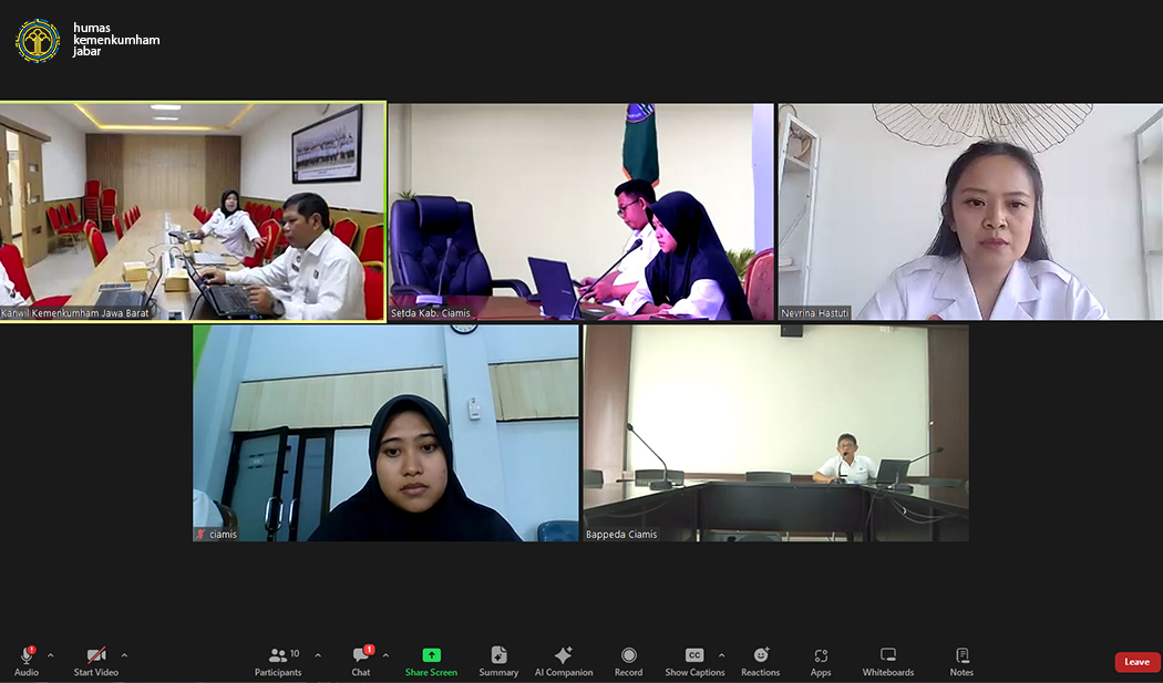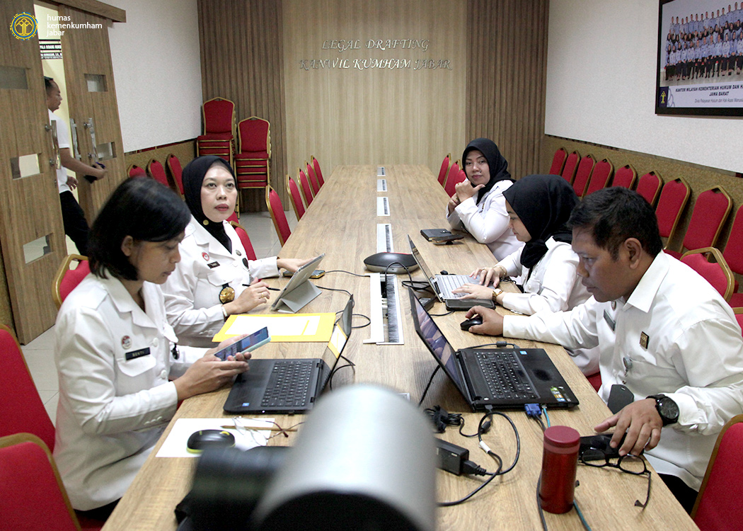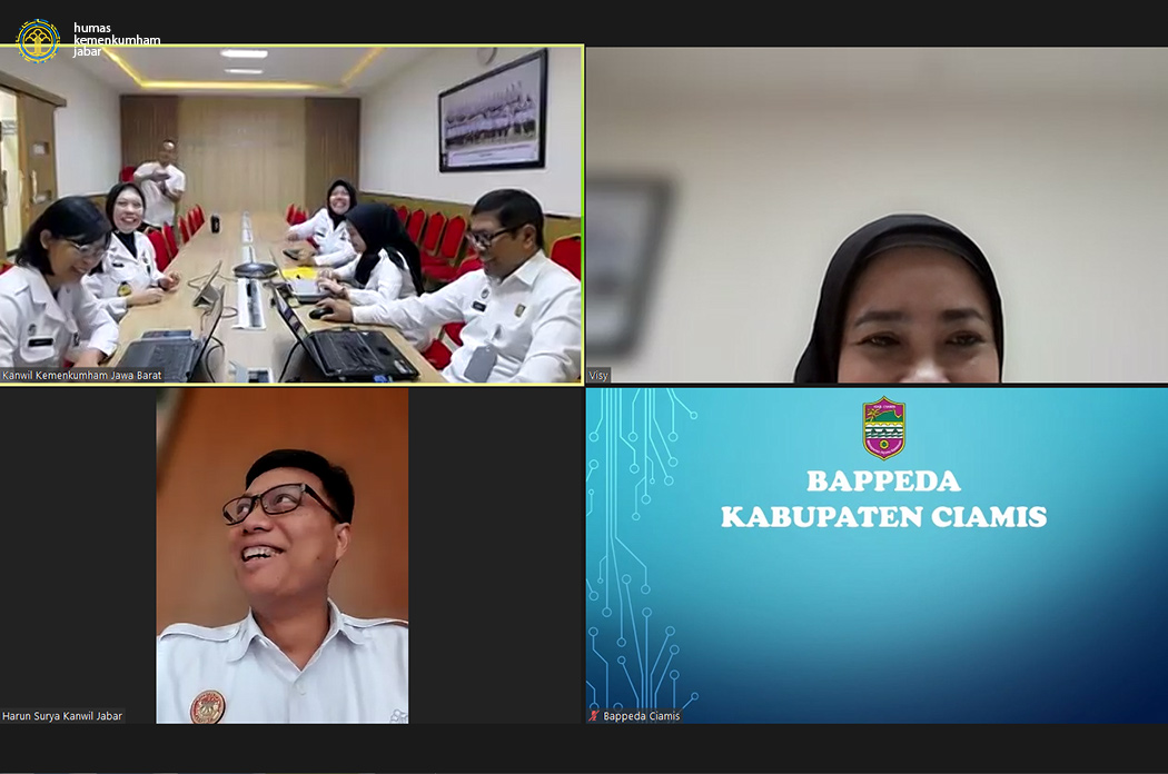 Dari ruang rapat Ismail Saleh, Kanwil Jabar, Kepala Bidang Hukum Lina Kurniasari bersama para Kepala Subbidang FPPHD Suhartini dan para perancang PUU Kanwil Jabar beserta Plh. Kadivyankumham Harun Surya yang hadir secara daring dari tempat kerja melaksanakan Rapat Harmonisasi bersama Perangkat Daerah Pemerintah Kabupaten Ciamis yang terhubung secara daring melalui Zoom Meeting. Rapat kali ini membahas Raperda tentang Rencana Pembangunan Jangka Panjang Daerah 2025-2045 dan Raperda tentang Perubahan Ketiga Atas Perda Kabupaten Ciamis No. 8 Tahun 2016 tentang Perangkat Daerah.