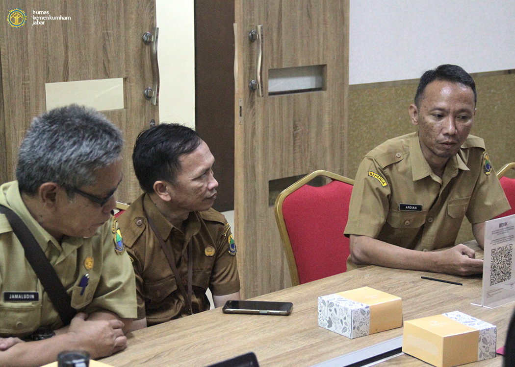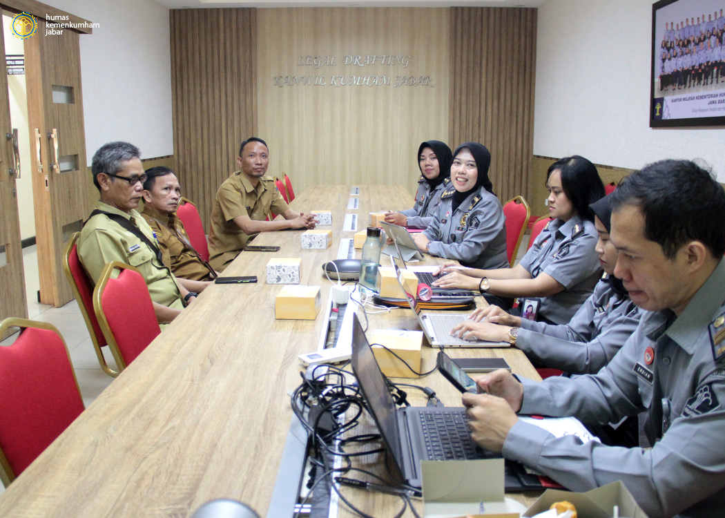 Pada ruang rapat Ismail Saleh, Kanwil Jabar, Kepala Bidang Hukum Lina Kurniasari beserta Kepala Subbidang FPPHD Suhartini dan para Perancang PUU Kanwil Jabar menerima kehadiran Perangkat Daerah Pemkab Cianjur, dalam rapat ini Kepala Divisi Pelayanan Hukum dan HAM Andrieansjah juga turut hadir secara daring melalui Zoom Meeting.