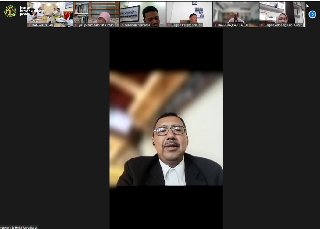 BANDUNG – Kantor Wilayah Kementerian Hukum dan HAM Jawa Barat (Kanwil Kemenkumham Jabar) pada siang ini melaksanakan Rapat Harmonisasi secara daring melalui Zoom Meeting bersama Pemerintah Daerah Kabupaten Garut membahas 5 Rancangan Peraturan Bupati (Raperbup) Kabupaten Garut (Rabu, 18/09/2024).