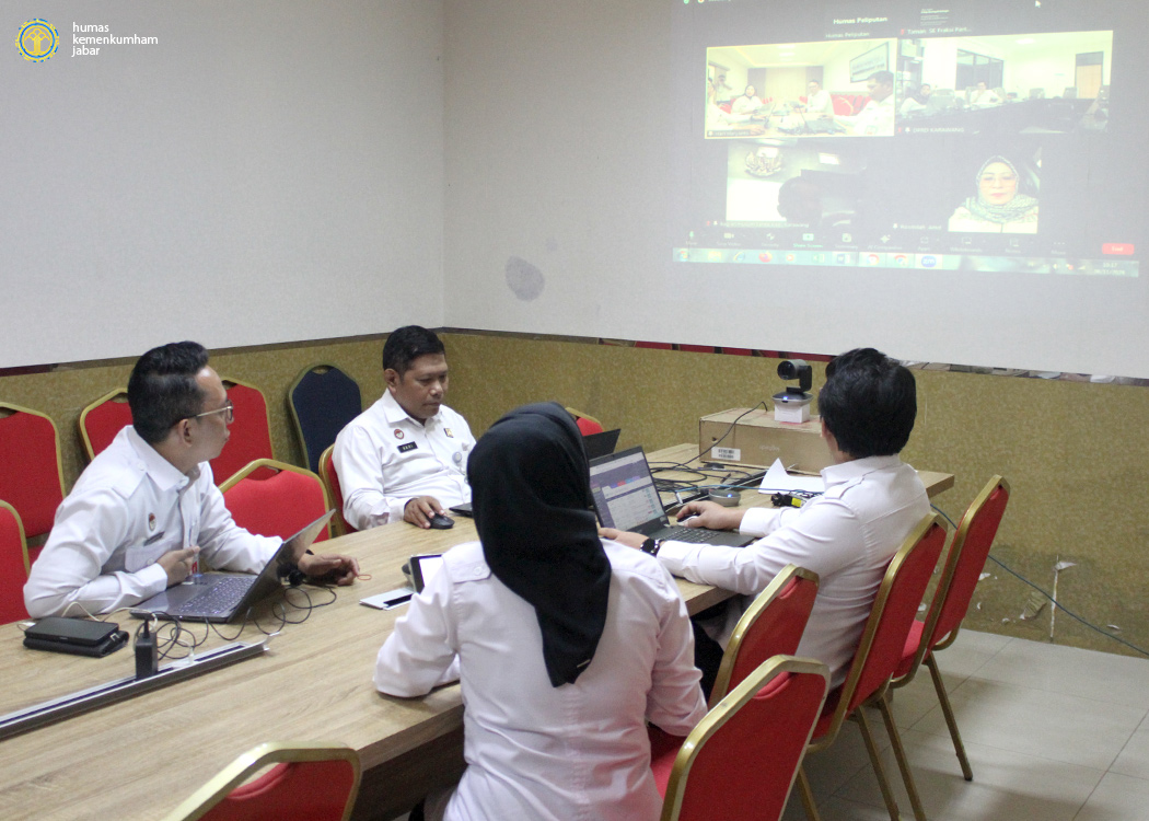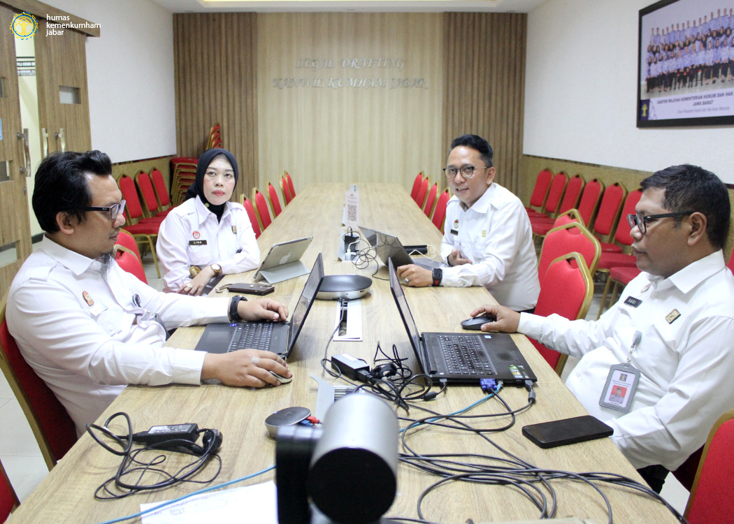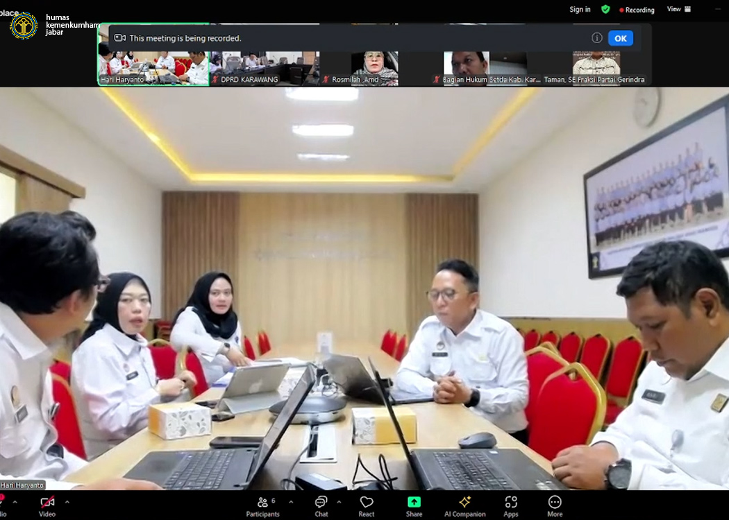 Dari ruang rapat Ismail Saleh, Kanwil Jabar, Kepala Bidang Hukum Lina Kurniasari bersama Perancang PUU Madya Kanwil Jabar Ery Kurniawan dan para Perancang PUU Kanwil Jabar melaksanakan rapat pembahasan secara virtual bersama anggota DPRD Kabupaten Karawang dan Perangkat Daerah Pemkab Karawang.