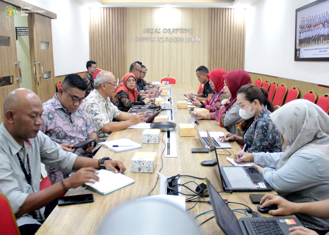 Pada ruang rapat Ismail Saleh, Kanwil Jabar, Kepala Bidang Hukum Lina Kurniasari bersama Kepala Subbidang FPPHD Suhartini dan para Perancang PUU Kanwil Jabar melaksanakan rapat harmonisasi bersama dengan Perangkat Daerah Pemkab Sukabumi membahas Raperda tentang Rencana Pembangunan Jangka Panjang Daerah (RPJPD) Tahun 2025-2045, Raperbup tentang Tata Cara Pemungutan Retribusi Daerah dan Raperbup tentang Batas Wilayah Kecamatan Cikakak dan Desa-Desa di Kecamatan Cikakak.
